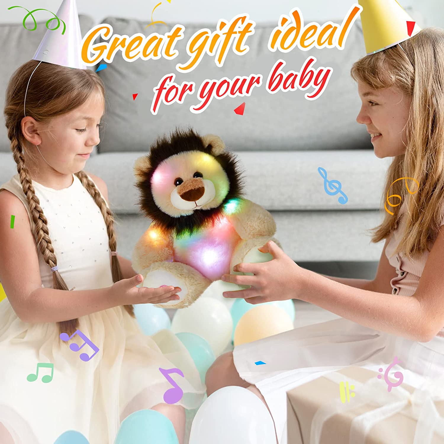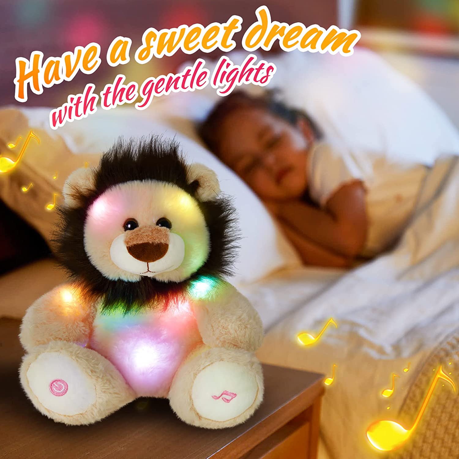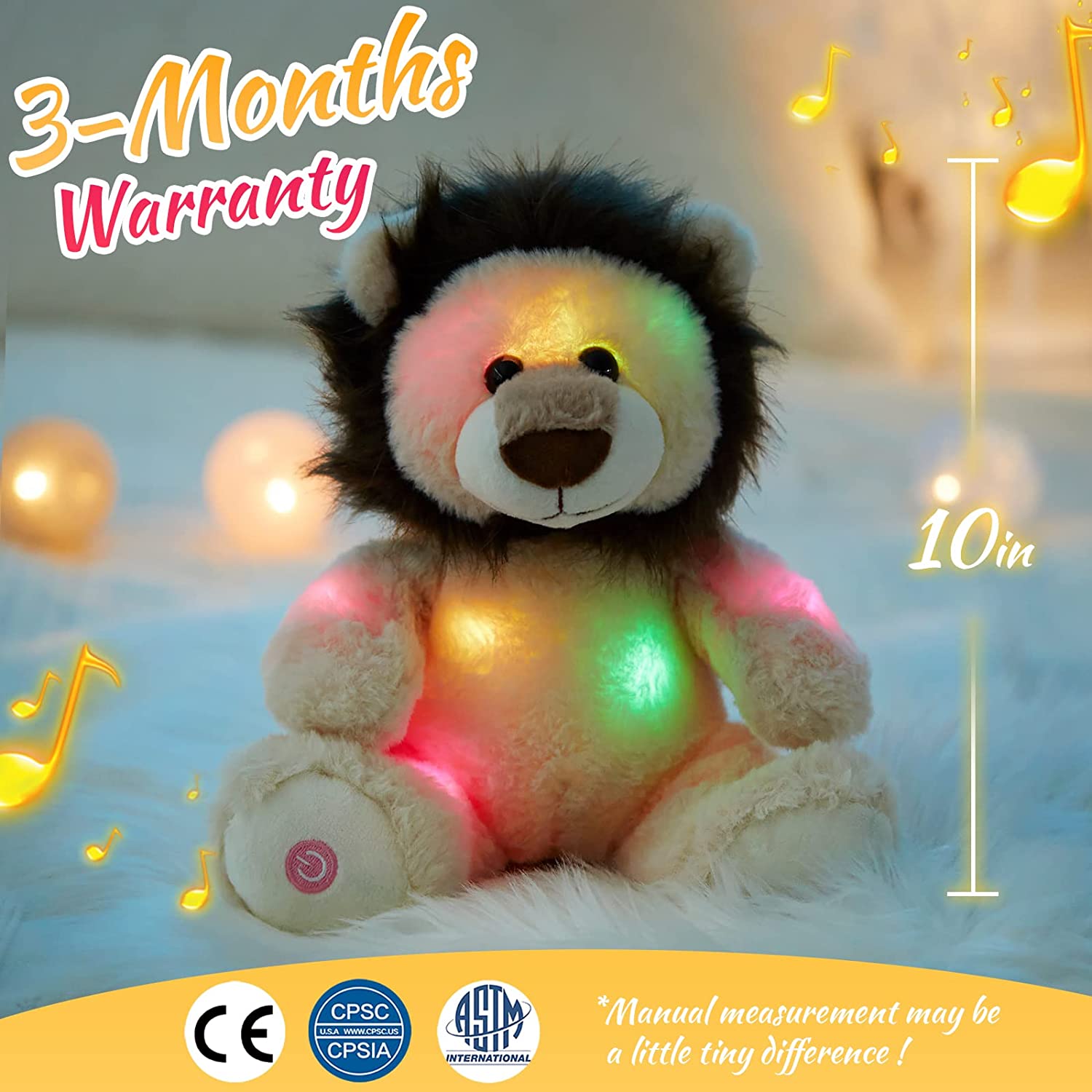 Glow Guards 10" Light Up Music Lion Stuffed Animal LED Glowing Singing Cute Plush Toy Decors Children's Day Birthdays Gifts for Kids Toddlers