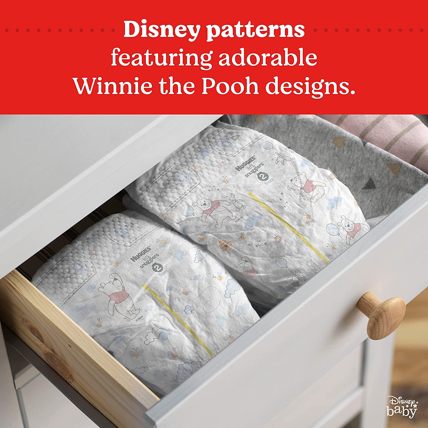 Huggies Little Snugglers Baby Diapers are designed for 360 degrees of soft and comfy gentle skin protection to help support clean and healthy skin for your little one. These disposable baby diapers are made with extra soft materials to provide a gentle tummy fit for extra comfort and protection during Tummy Time and Feeding Time. A wetness indicator of a yellow line changes to blue when wet, so you'll always know when your baby is ready for a diaper change. The GentleAbsorb Liner absorbs wetness on contact and eliminates leaks for up to 12 hours, helping keep your baby’s skin clean and healthy. These baby diapers also have a soft, back pocketed waistband to prevent diaper blowouts and contain the mess. They're also and dermatologist-tested, as well as fragrance free, lotion free, paraben free, and free of elemental chlorine and natural rubber latex, making them safe for sensitive skin. Preemie, Newborn and size 1 feature an umbilical cord cutout to protect your baby's belly button while it heals. Designed with magical Disney Winnie the Pooh patterns, Little Snugglers Diapers are available in size Preemie (up to 6 lbs), size Newborn (up to 10 lbs), size 1 (8-14 lbs), size 2 (12-18 lbs), size 3 (16-28 lbs), size 4 (22-37 lbs), size 5 (27+ lbs) and size 6 (35+ lbs). Don't get caught without Huggies diapers! Sign up for Subscribe & Save to ensure you always have Little Snugglers on hand. Join Huggies Rewards+ powered by Fetch to get rewarded. Earn points on Huggies diapers and wipes, in addition to thousands of other products to redeem for hundreds of gift cards. Download the Fetch Rewards app to get started today!