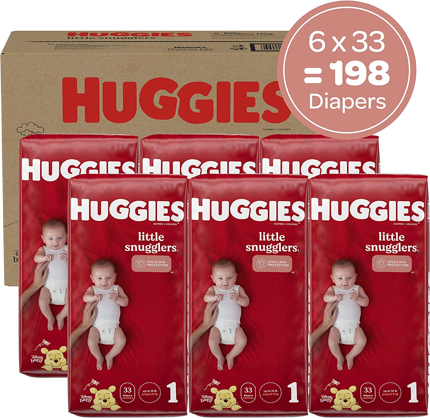 Baby Diapers Size 1 (8-14 lbs), 198ct, Huggies Little Snugglers Newborn Diapers