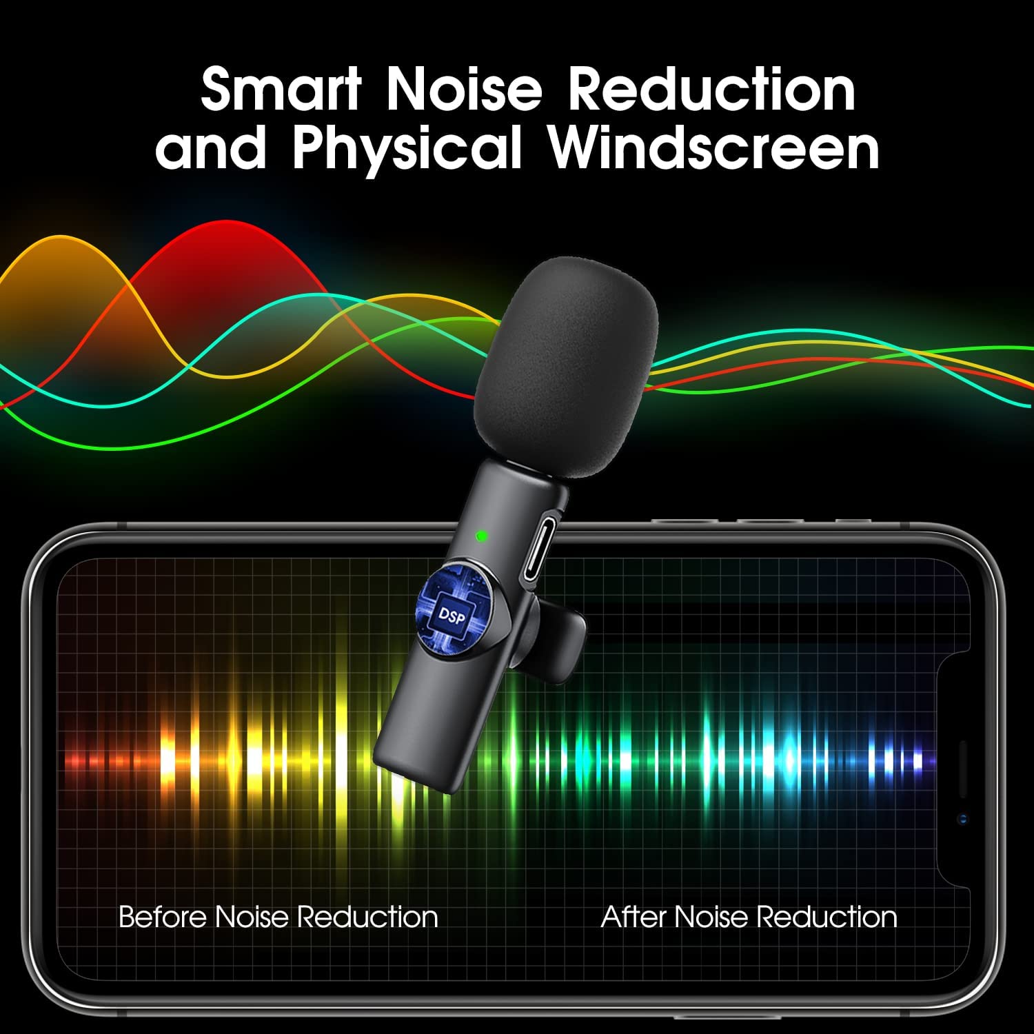 【Dual Wireless Microphones for iPhone】This dual wireless lavalier microphone set built-in noise reduction chip, real-time auto-sync technology, and 2.4G signal transmission with super low latency(0.009s), the sound picking-up follows the picture in real-time. Lapel microphone wireless can easily cope with various noisy environments and truly restore human voices.