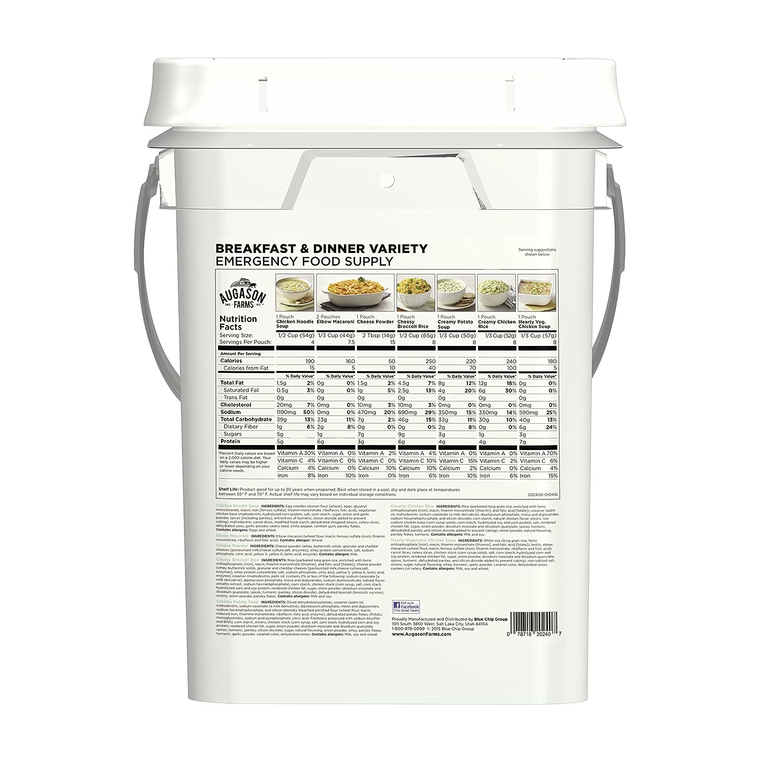 Augason Farms Breakfast and Dinner Variety Pail Emergency Food Supply Everyday Meals 4 Gallon Pail & 5-90620 Country Fresh 100% Real Instant Nonfat Dry Milk, 1 lb., 13 oz.