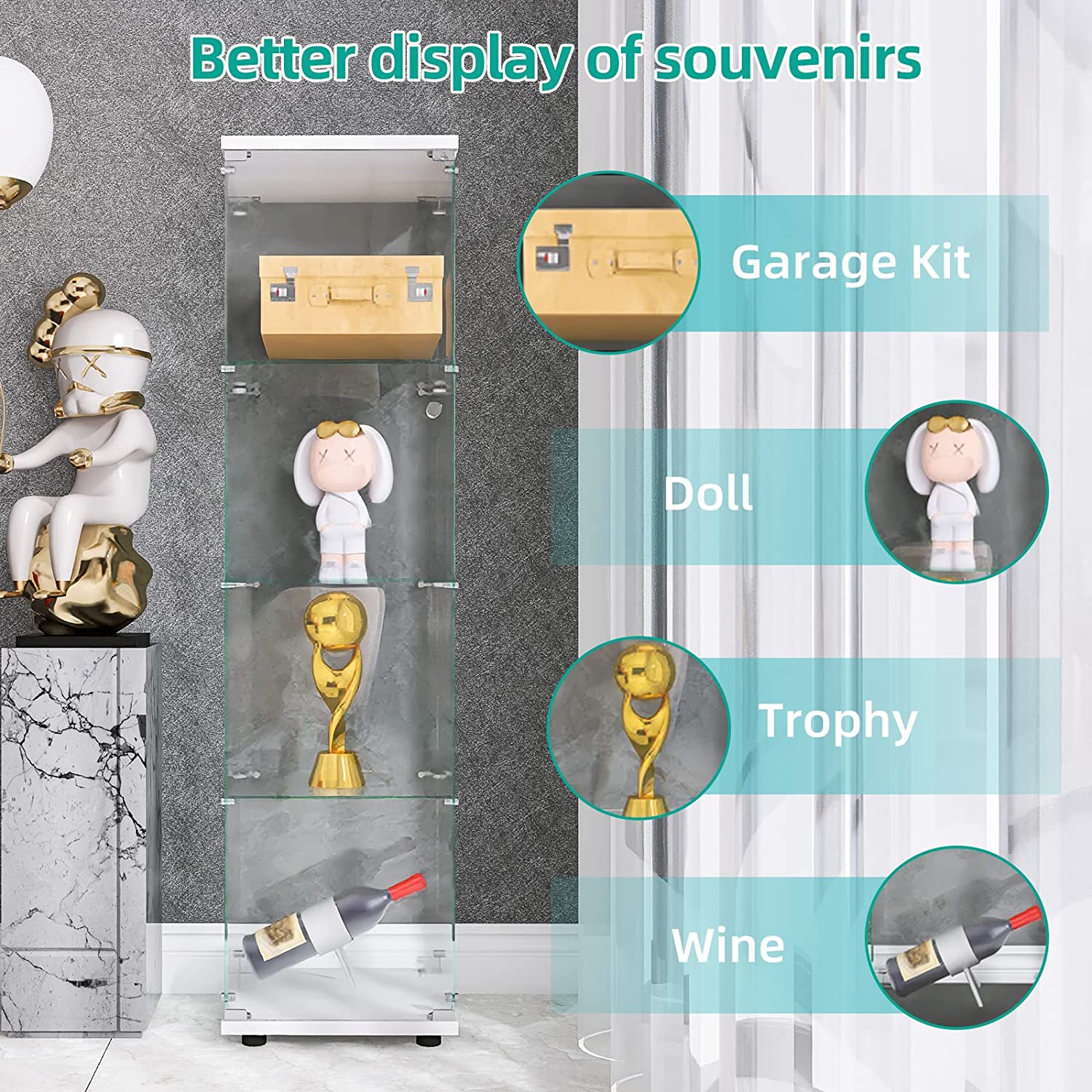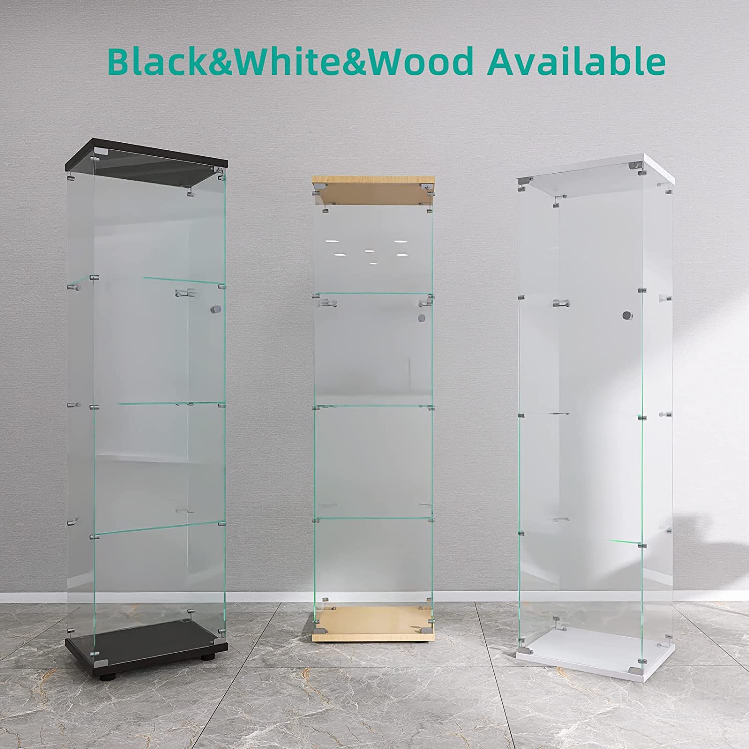 High Quality&Safe:FANYUSHOW 4-shelf glass display case is constructed with high-quality tempered glass and solid wood boards. Tempered glass is thicker than ordinary glass, has stable structure.There are bumper strips between glass plates for safe opening.