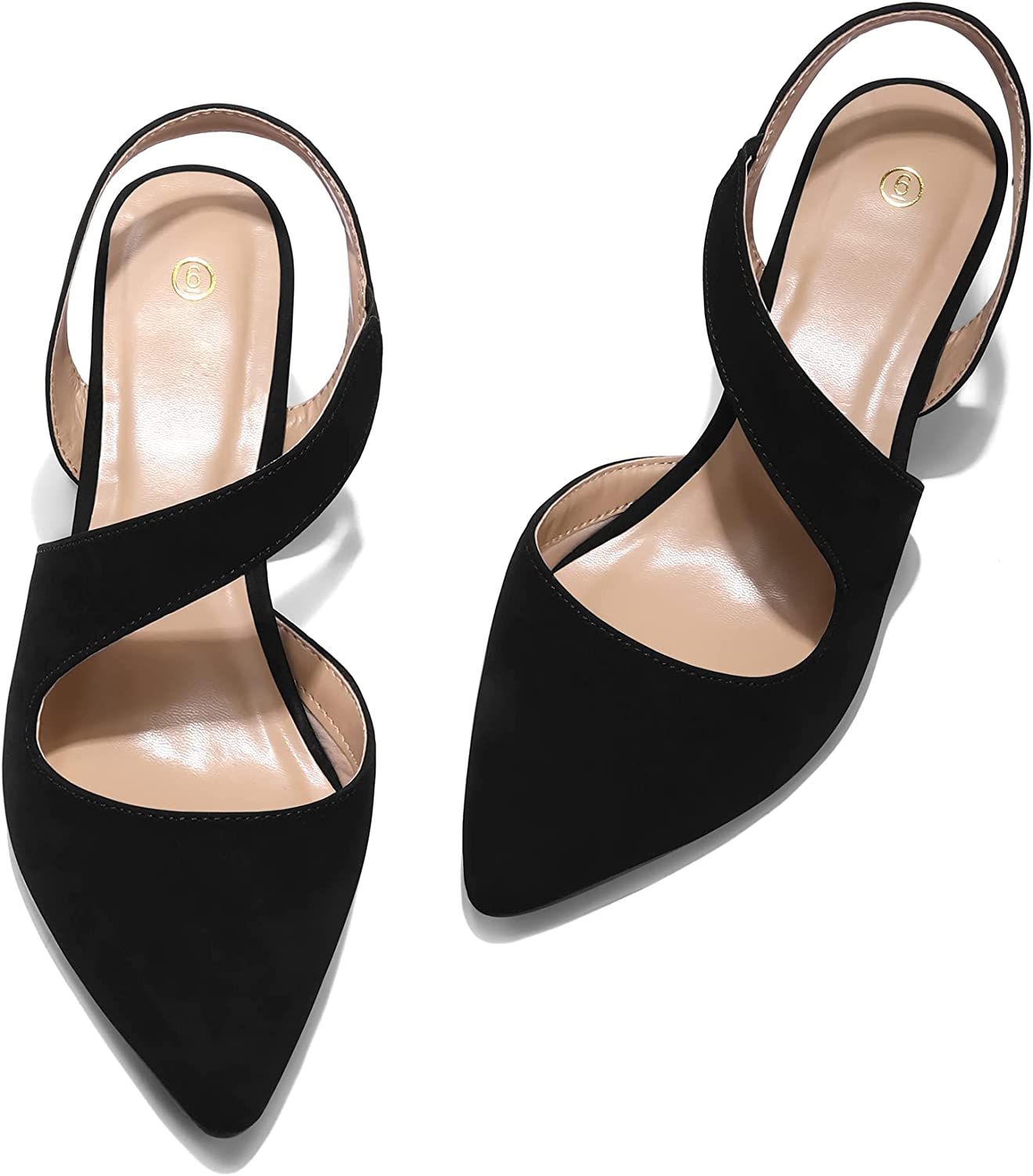 FASHION: Women's lady pumps with slingback design and classic pointed toe create the illusion of longer legs. Slip into a relaxed and exquisite state of mind with these pumps.