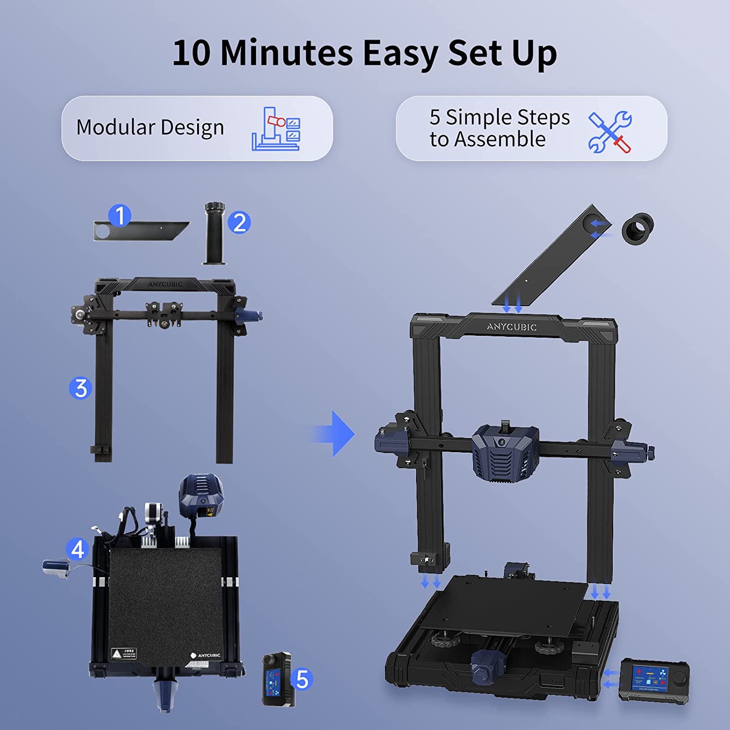 Easy Assembly: Anycubic Kobra Neo is a 90% Pre-installed 3D Printer, which make it possible to set up within 10 minutes, more suitable for beginners than other DIY 3D Printers.