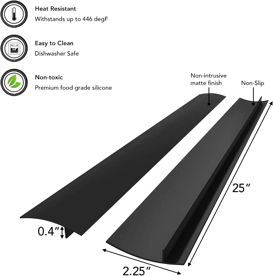 - 【Dust-proof and anti-movement】Our stove gap filler top surface is matte black, It is better to fingerprint and smudge resistant and does not collect dust. The back side is shiny non-slip (tacky) which keep the cover tight in place.