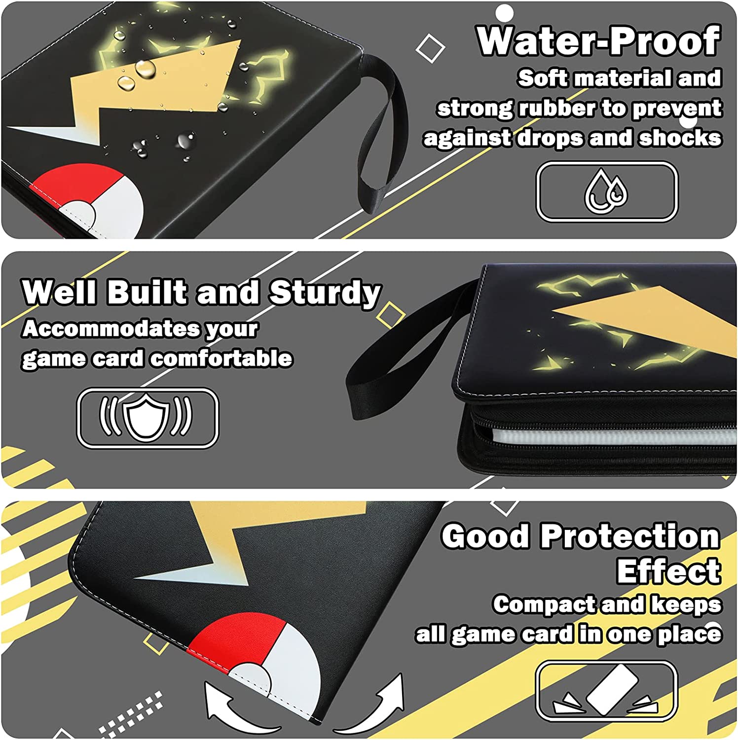 • 【 Easy to Carry 】- A good size for little kids to carry around ( Size: 9.6"x7"x1.6" ). The pokemon cards holder 4 pocket has a handy strap to carry it or hang it by and zips closed to keep the cards well.