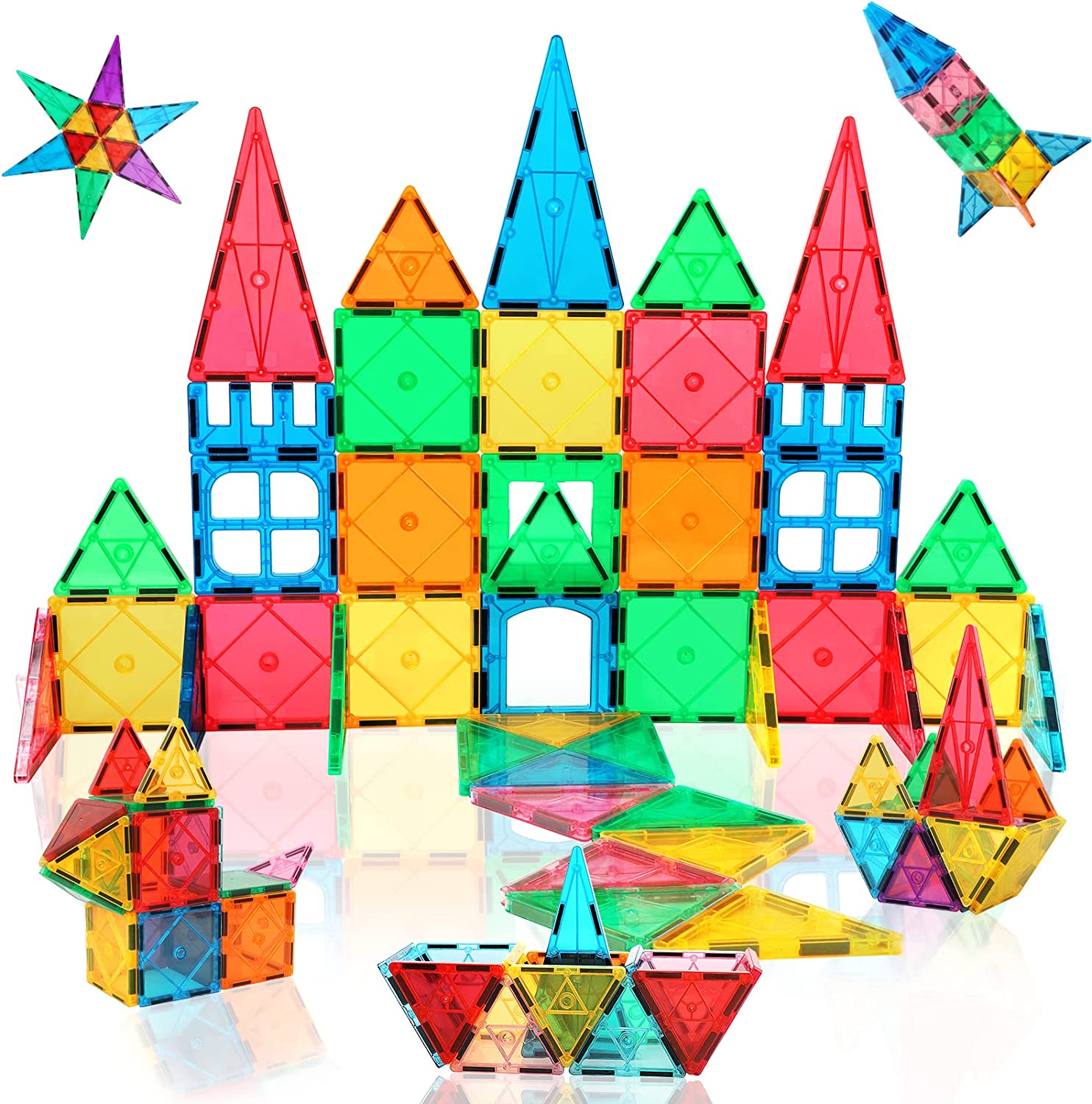 • [Creative Imagination] Developmental educational learning tiles for stimulating intelligence perception potential. Children can recognize 3D space and geometry for cognitive knowledge, number count & architectural design at early ages, building magnet tiles structures by experiment & innovation. Educational building toys for preschool, kindergarten, primary elementary middle school, home, day care center, indoor or outdoor student activities.