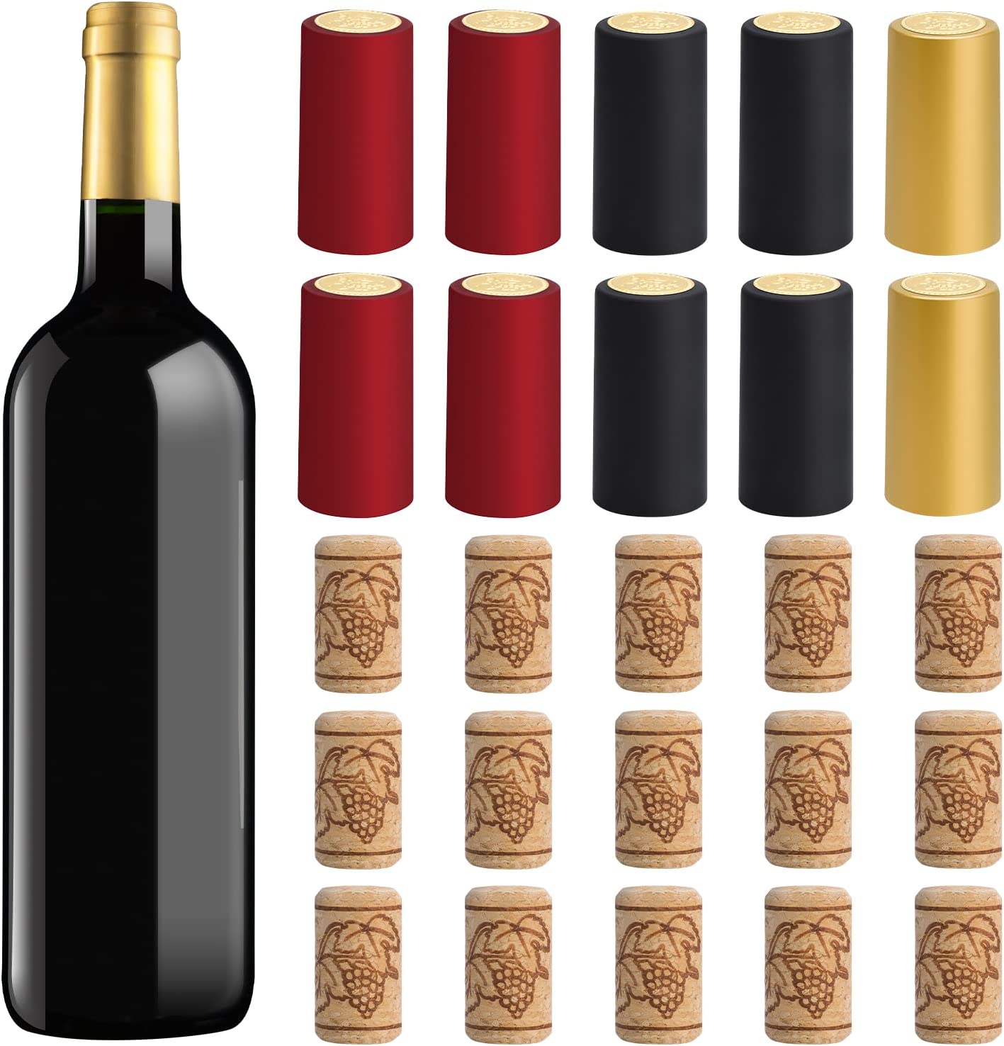 • Kit included:it is a very high-quality cork for wine bottles, the package includes 50PCS with a plastic black top Wine corks plug Bottle wooden stopper and 50PCS(20PCS Black and 20PCS Red and 10PCS Gold) PVC heat shrink capsules bottle cap plugs replacement seals.