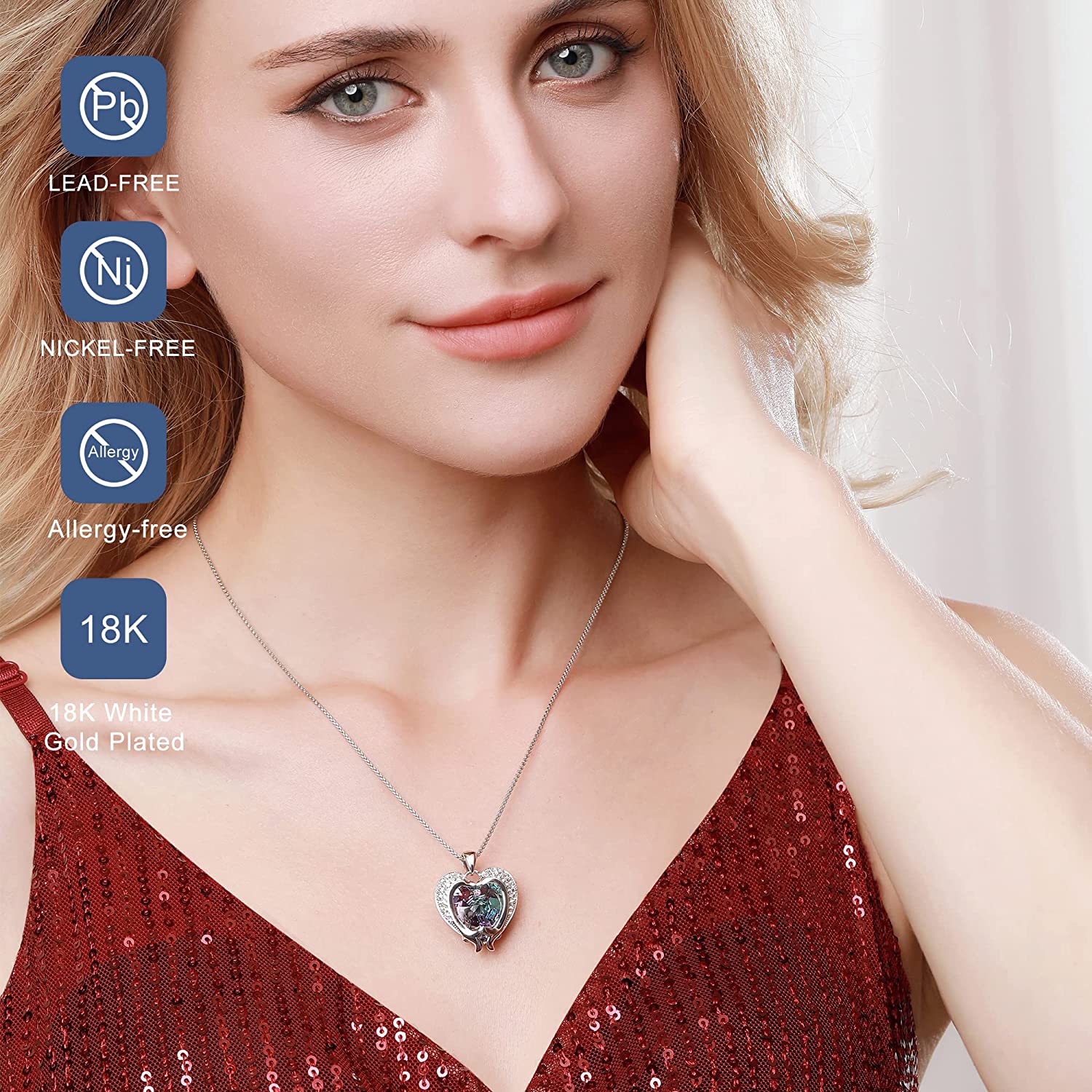 Specification - Pendant Size: 1.18 x 0.93inch | Chain Length: 17.72 + 2inch | Plating: 18K Rose or White Gold Plated | Clasp: Lobster Claw.