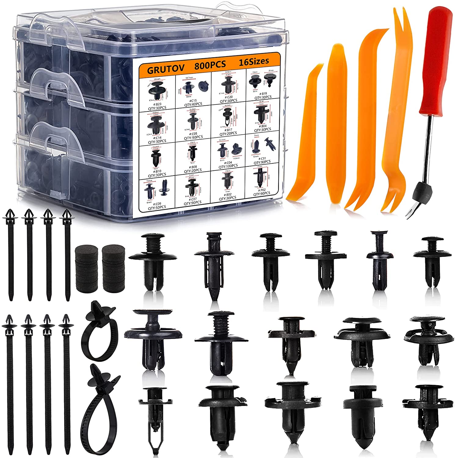 Grutov 800Pcs Car Push Retainer Clips Automotive Screws Auto Body Fastener Push Pins Kit Set Panel Bumper Clips with 10 Cable Ties Fastener Remover for GM Ford Toyota Honda Chrysler Acura Red