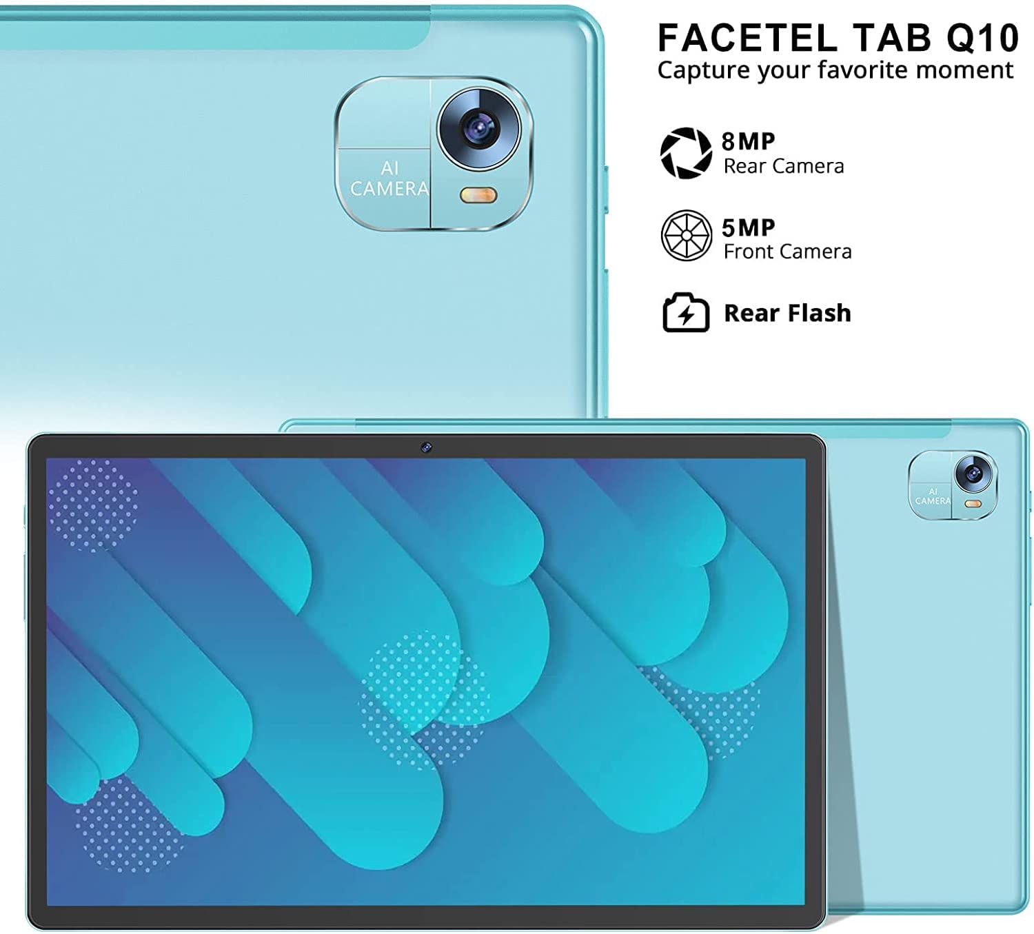 - 【High Performance & storage】 Facetel Q10 Tablet has a built-in 4GB running memory,enjoy smooth multitasking and switching. between applications. 128GB storage capacity, includes a micro SD card slot, (MicroSD can be expanded to 128GB), allows you to store all your files,meet your daily entertainment and work needs.
