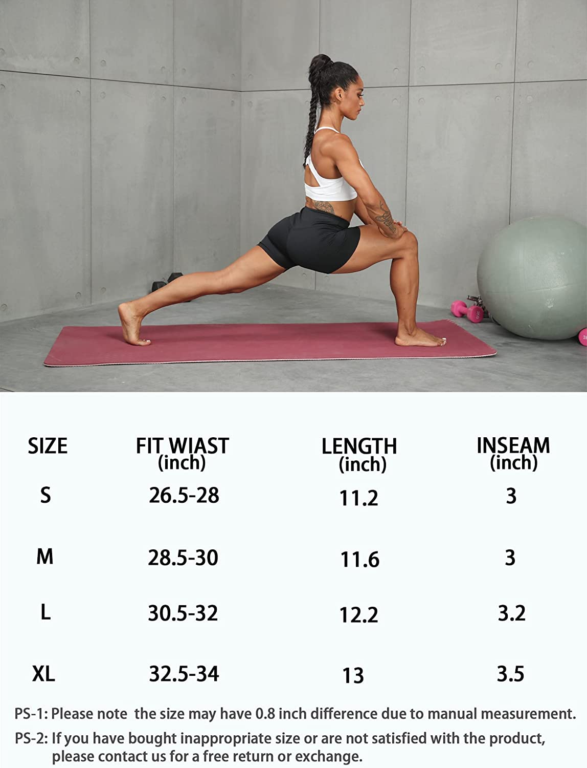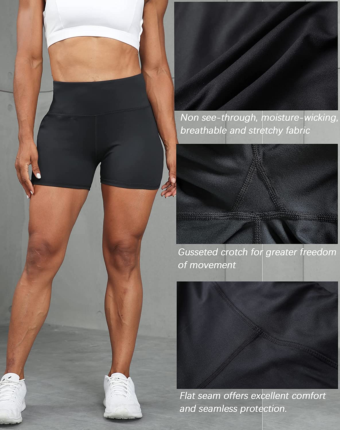 • Gusseted crotch design and elastic waistband: These biker shorts are designed with a gusseted crotch that reduces chafing and allows for a full range of motion. The high-rise waistband and tummy control offer a secure and flattering fit, helping you feel confident and comfortable during any exercise