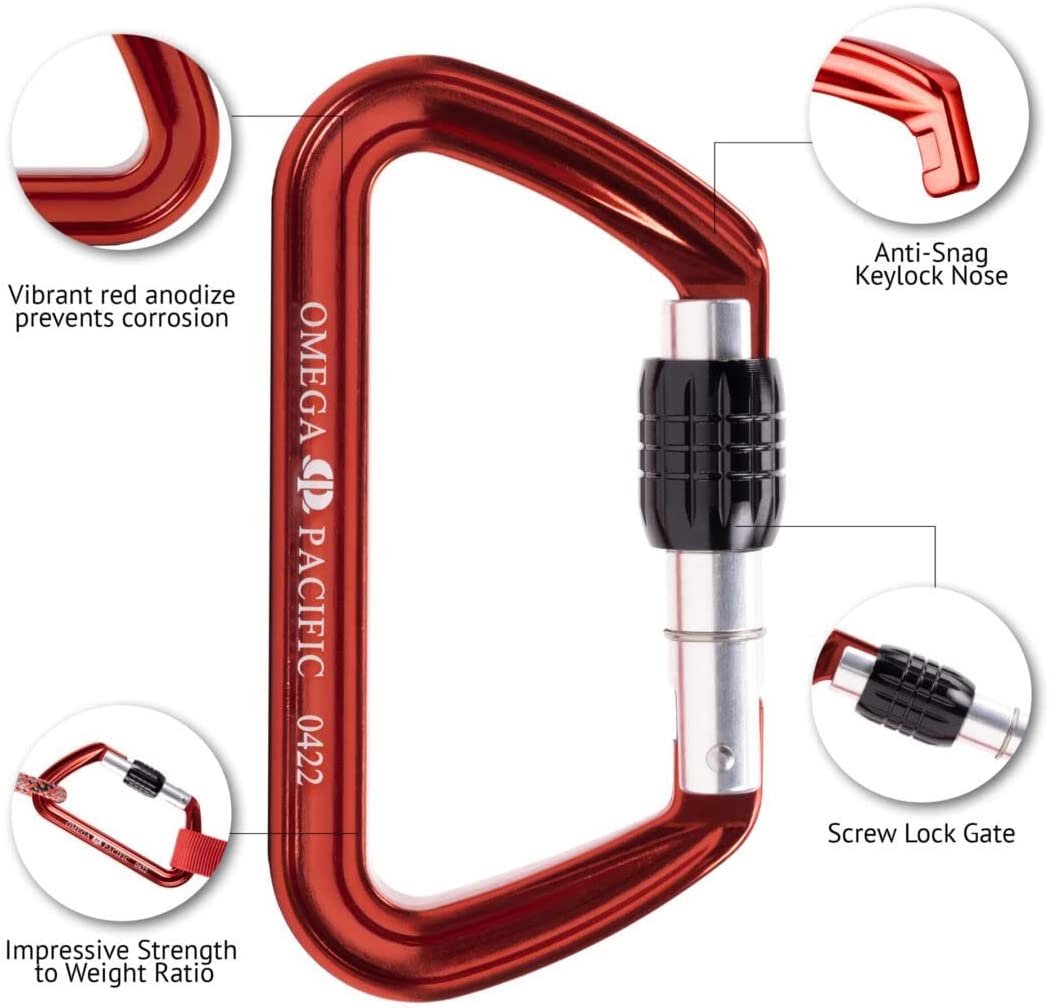 Omega Pacific Caesar Aluminum Keylock Screw-Lok Carabiner - at 38 kN, it’s Wicked-Strong and Represents The Strongest and Most Durable Design in Life Safety Equipment