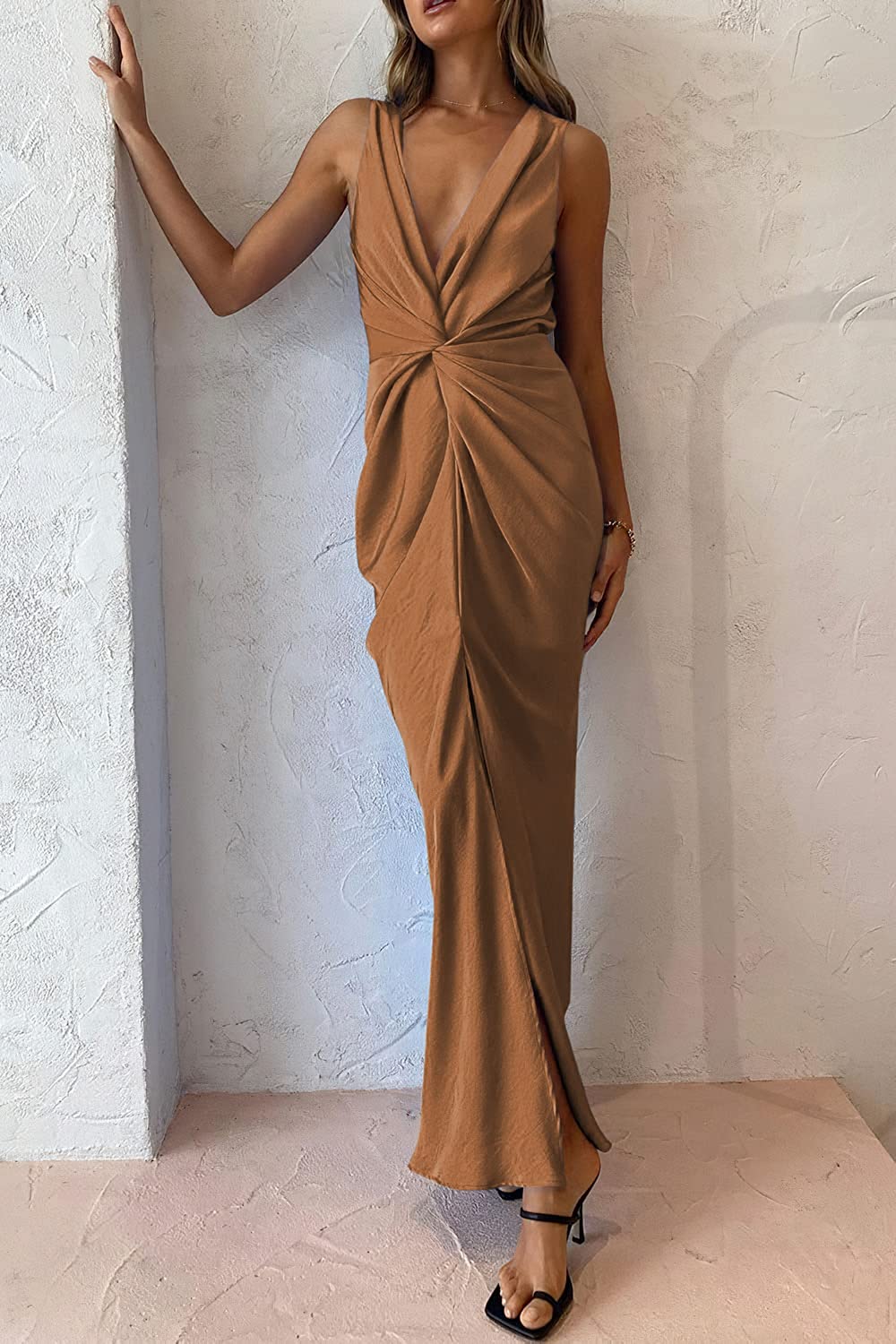 STYLISH DESIGN: Ruched Bodycon Dress For Women/Deep V Neck Satin Dress For Women/Sleeveless Maxi Dress For Women/Twist Front Dress For Women/Split Dress For Women/Solid Color Tank Dress For Women/Evening Party Dress For Women/Wedding Guest Dress For Women/Cocktail Dress For Women/Summer Dress For Women Trendy