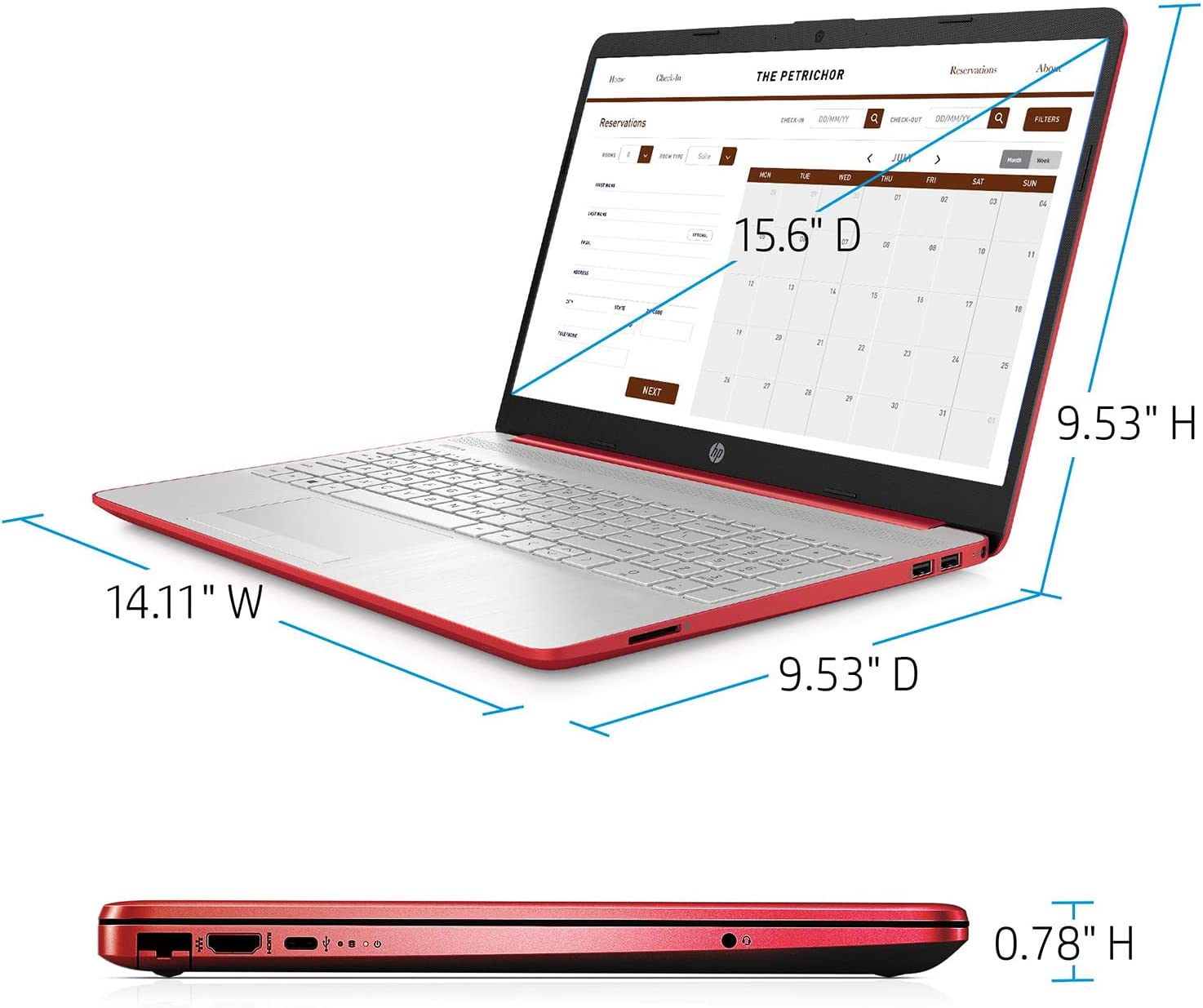 Processor: Intel Pentium Silver N5000 1.1GHz Quad-Core Processor (4MB Intel Smart Cache, up to 2.70GHz) Graphics: Intel UHD Graphics 600 Operating system: Windows 11 Home 64-bit Memory: HP 16GB DDR4 SDRAM Hard Drive: 1TB Solid State Drive Optical Drive: No Display: 15.6" diagonal, HD (1366 x 768), micro-edge, BrightView, 220 nits, 45% NTSC Connectivity: Realtek RTL8821CE 802.11a/b/g/n/ac (1x1) Wi-Fi and Bluetooth 4.2 combo Miracast compatible; MU-MIMO supported Audio: Dual Speakers Keyboard: US English, Non-Backlit Full Size Keyboard with Numeric Keypad Built-in HD Webcam: HP True Vision 720p HD camera with integrated dual array digital microphones Media Drive: Multi-format SD media card reader Ports: 1 x SuperSpeed USB Type-C 5Gbps signaling rate 2 x SuperSpeed USB Type-A 5Gbps signaling rate 1 x AC smart pin 1 x HDMI 1.4b 1 x Headphone / Mic Combo Jack Battery: Up to 10.5 Hours Color: Scarlet Red Dimensions L x W x H (inches): 14.11 x 9.53 x 0.78 Weight: 3.92 lbs
