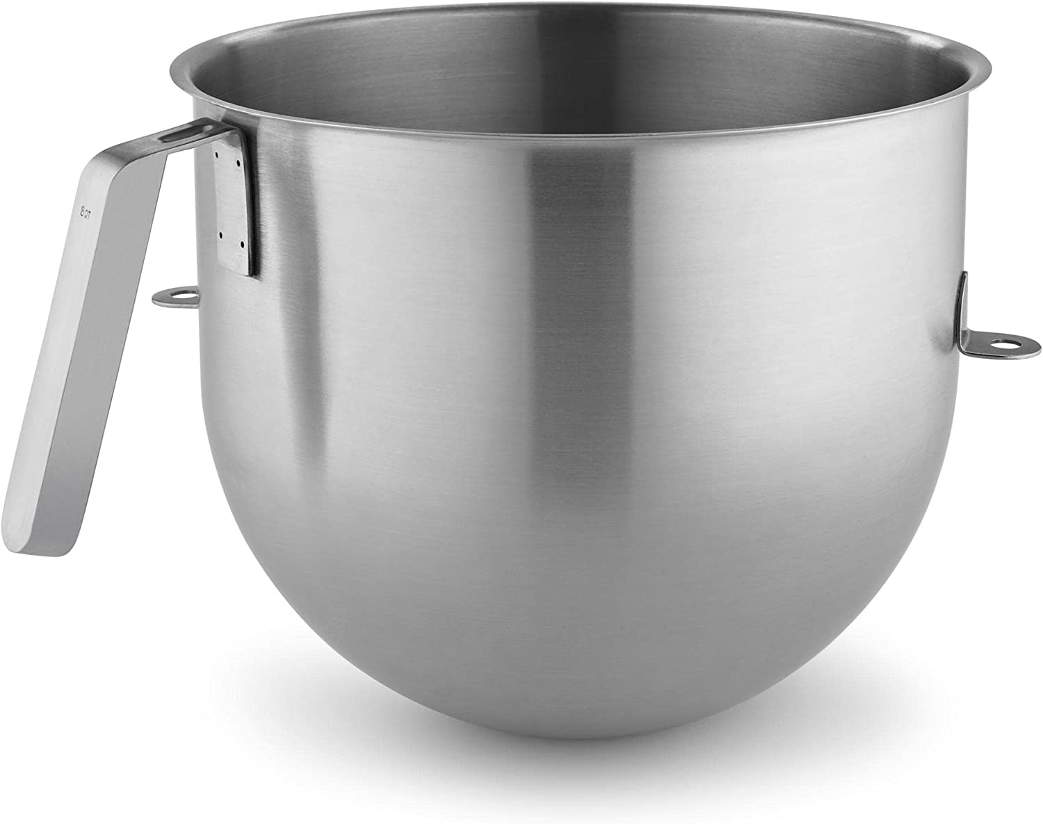 • Stainless steel bowl, wire whip, flat beater, and spiral dough hook