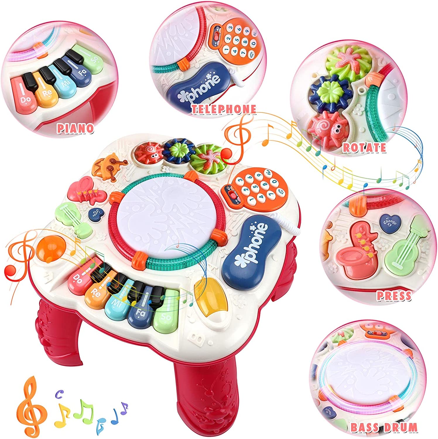 BACCOW Baby Toys 6 to 12-18 Months, Musical Activity Table for 1 Year Old Boys Girls Gifts, Toddler Infant Toys, Length 11.8 Inches Width 11.8 Inches Height 12.2 Inches