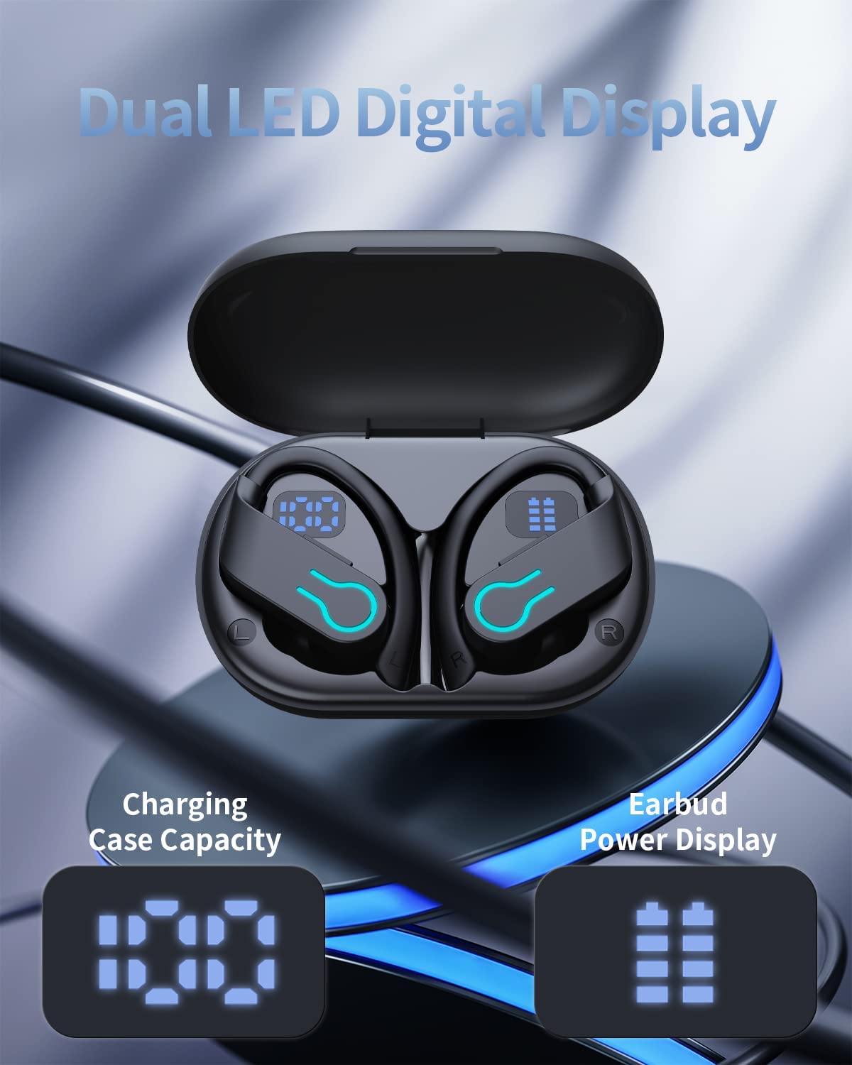 Bluetooth Headphones Wireless Earbuds Sports Over-Ear Bluetooth 5.3 Ear Buds with Earhooks 120H Playtime Wireless Headphones for Workout Waterproof Audifonos Bluetooth inalambricos LED Power Display