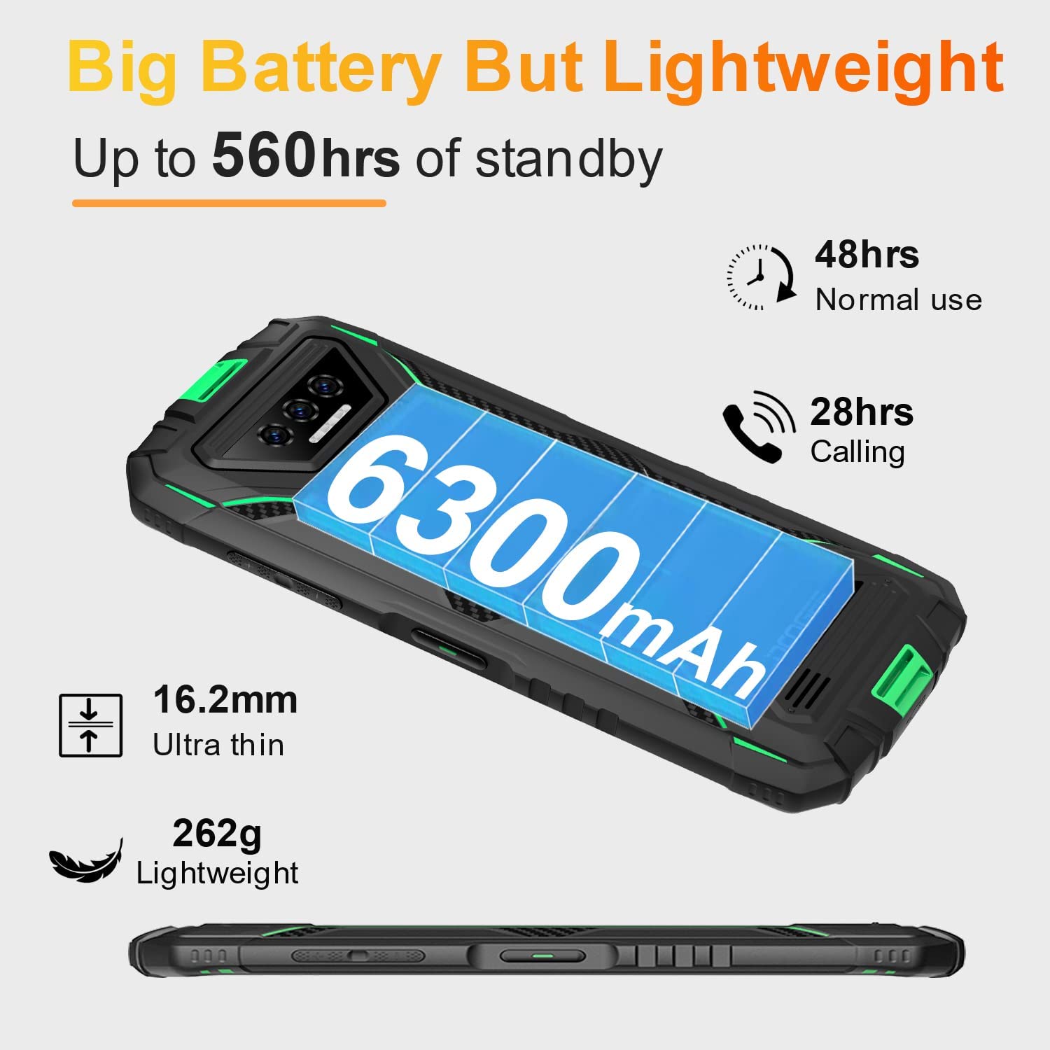 【All-day Massive Battery Life】DOGGEE S41 pro unlocked cell phone is equipped with a 6300 mAh large battery to provide all-day power for your outdoor adventures or long shift work without interruption. Long-lasting unlocked android phones battery uses up to 15 days on standby, 2-3 days of normal use, and 29 hours of calling.