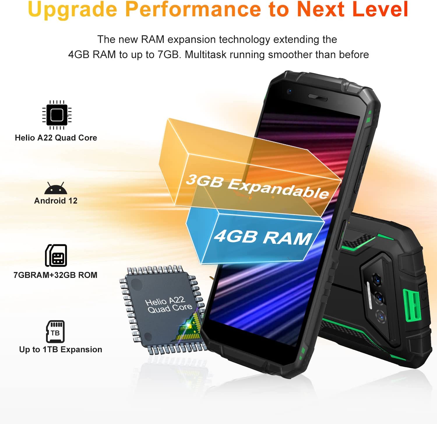 【AI Triple Camera & 7GB+32GB】DOOGE S41 pro rugged smartphone with 13MP+2MP+2MP Triple Rear Cameras, allowing you to freely capture the moments and beauty of the world. and stunning selfies with a 8MP front-facing camera to capture crisp moment. 7GB RAM(4GB+3GB Extended RAM) and 32GB ROM (available for expanding micro SD card up to 1TB - SD card not included) cell phone rugged ensures enough storage to store the images.