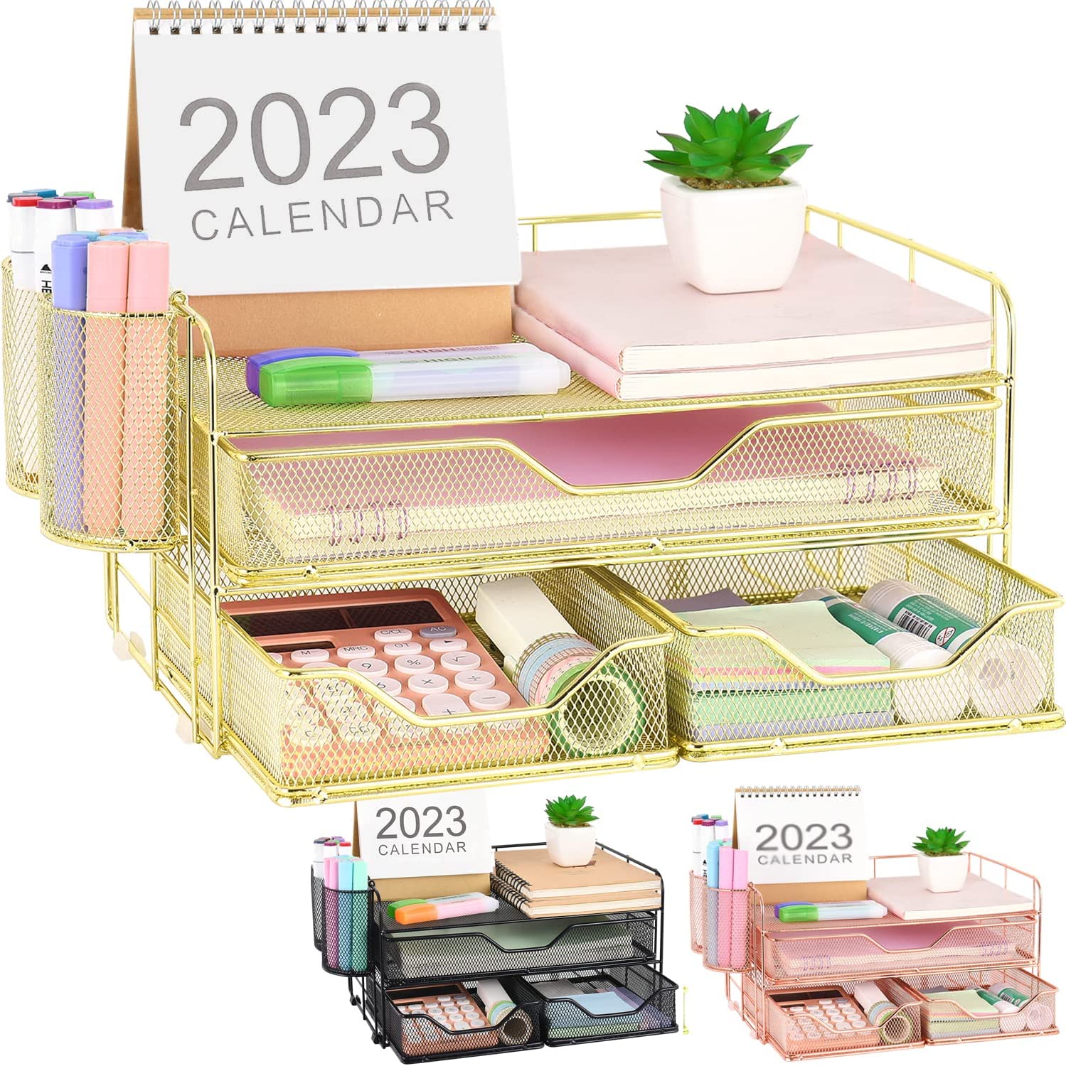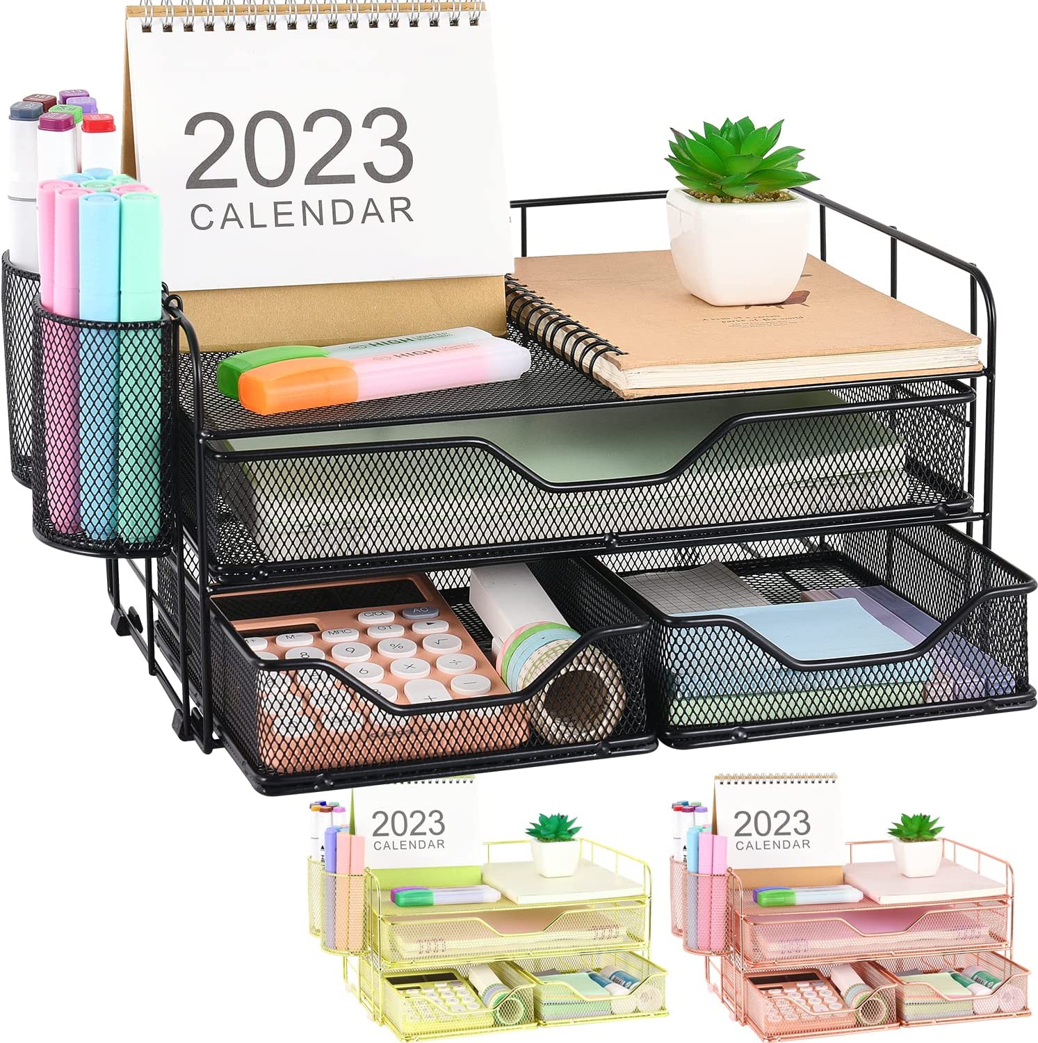 • ? [Perfect Paper Organizer] Desk drawer organizer has open top storage space+2 hanging pen holders+3 different drawers. It is convenient for you to ​quickly identify and sort out desk accessories, letters, and greatly improve your work efficiency.