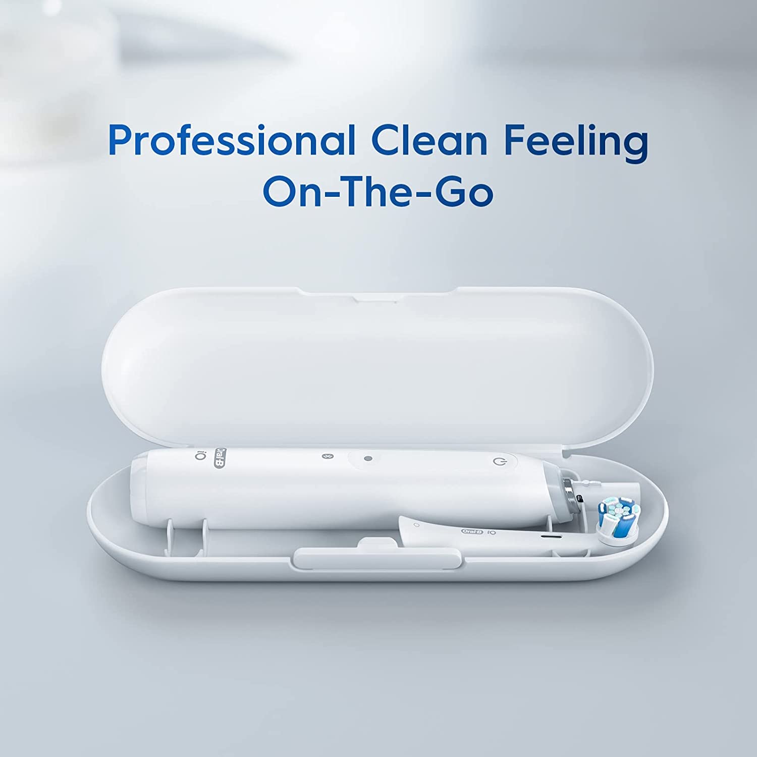 The iO is Oral-B’s best technology: Clinically Proven 500% More Plaque Removal Along Gumline versus a manual toothbrush. The i04 coaches you to a perfect clean. This is real time personalized coaching. The accompanying App shows your daily brushing report. Having 4 Brush Modes (Daily Clean, Whiten, Sensitive, and Super Sensitive) Oral-B is on your team for your everyday brushing task. A Round head and gentle micro-vibrations, the Magnetic interaction delivers smooth, harmonious motion through a Synchronized cleaning action (micro-vibrations synced with oscillations). A Built-in-2-Minute Timer ensures an even easier experience, helping you get an optimal clean on all your teeth. The Oral-B's quadrant timer breaks the two minutes up into four 30-second intervals to clean each quadrant of your mouth; we keep the time, so you don’t have to. Delivering the perfect pressure is done by having a Pressure Sensor. The Pressure Sensor Indicates optimal cleaning pressure and warns of over pressure. With an accompanying travel case, you’ll have a fresh clean everywhere you go. We’re with you on your next trip or even your mid-day on-the go brushing! Best of all, it is brought to you by Oral-B—the #1 brand used by dentists worldwide.* *Based on surveys of a representative worldwide sample of dentists carried out for P&G regularly.Do not use on children under age 3. Replace brush (head) every 3 months or sooner if brush head becomes worn.