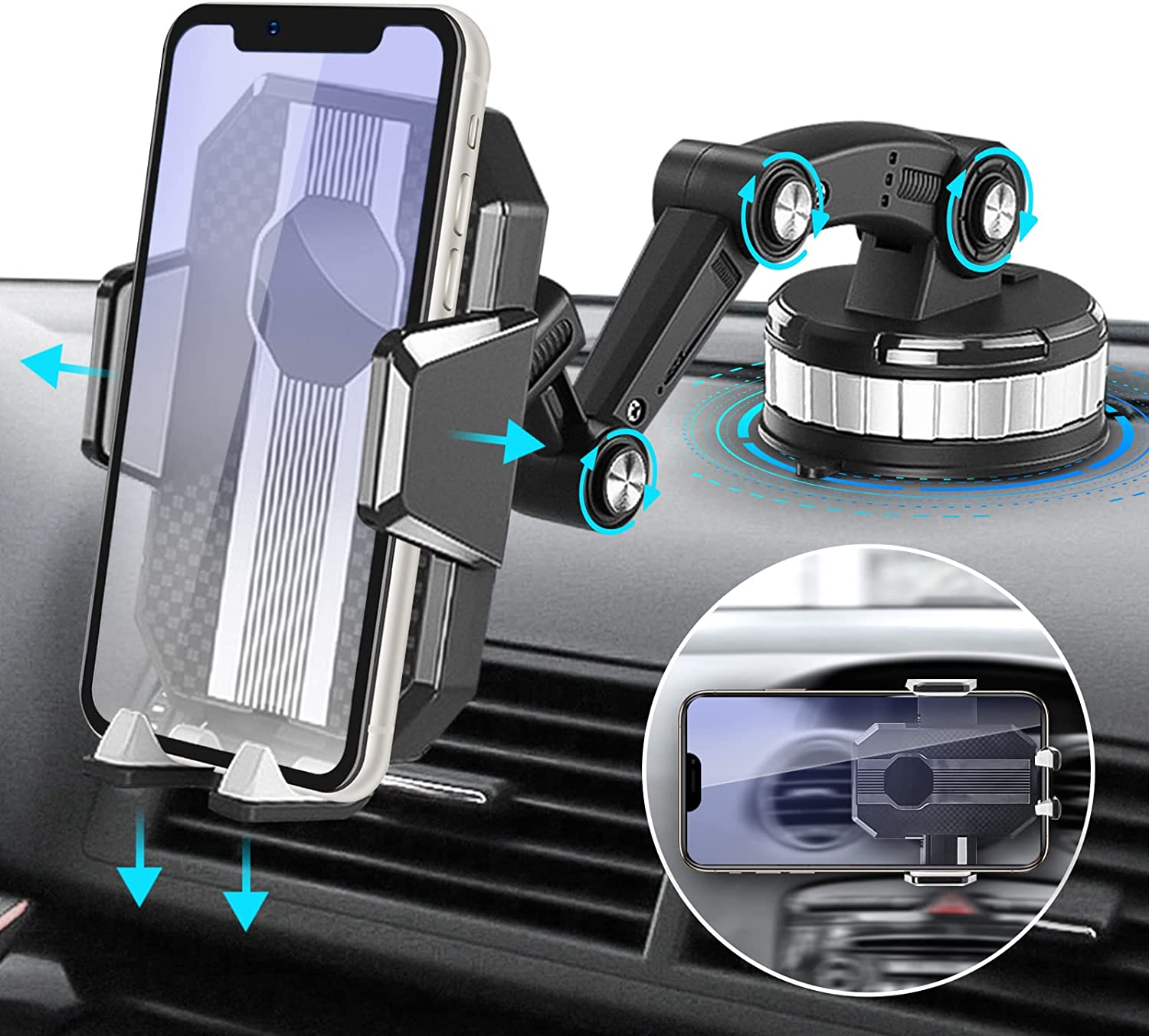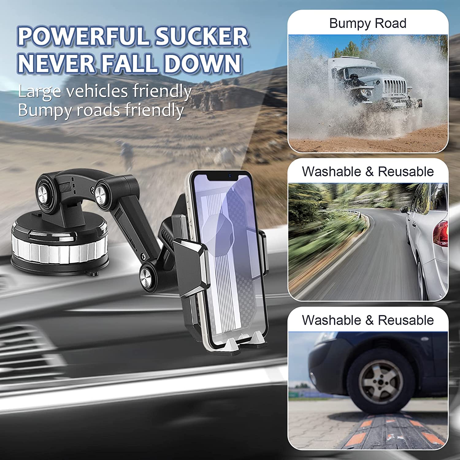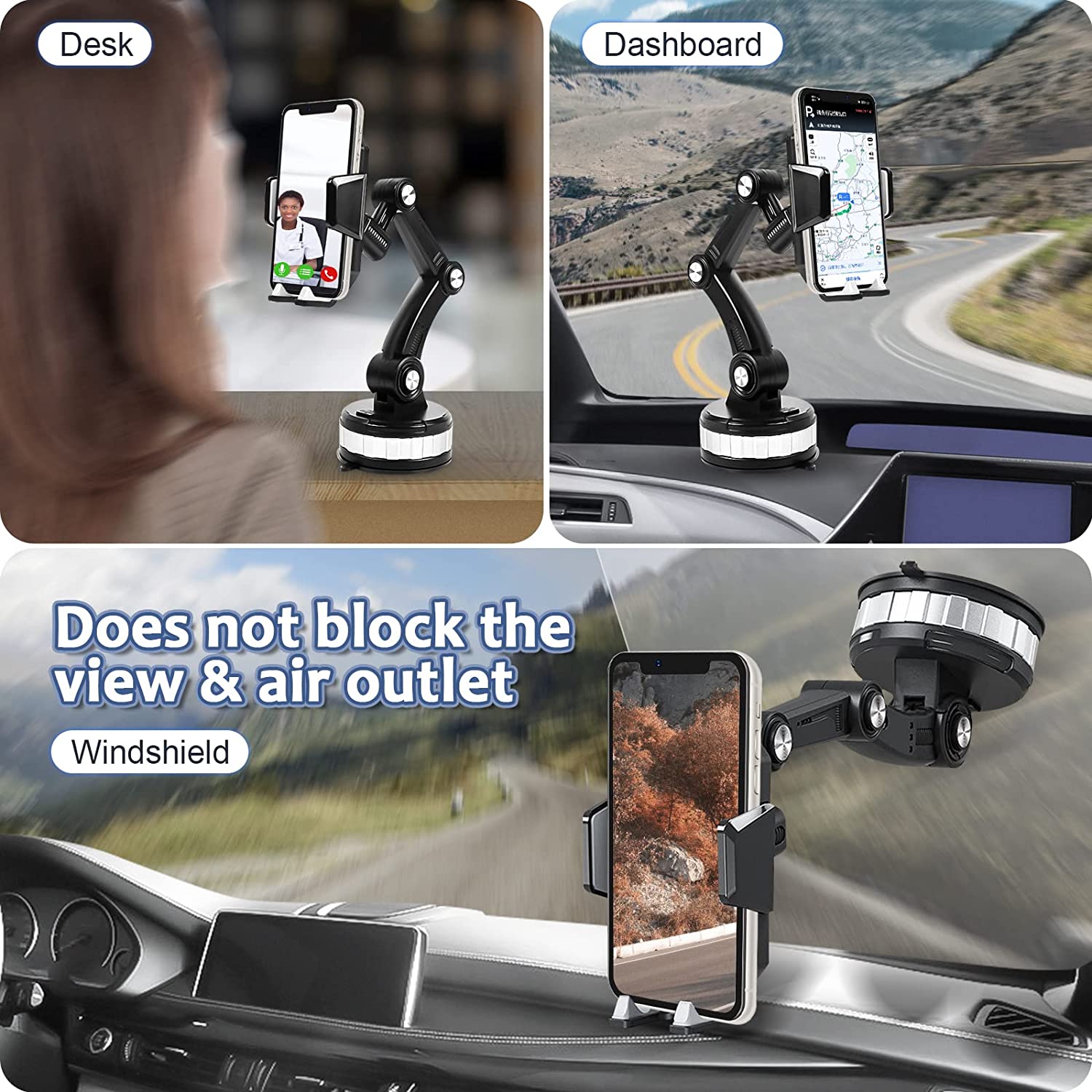 Cidsducac Phone Mount for Car, Dashboard & Windshield Universal Car Mount Phone Holder, Anti-Shake Stabilizer Cell Phone Holder Car Accessories for All Phones, Black