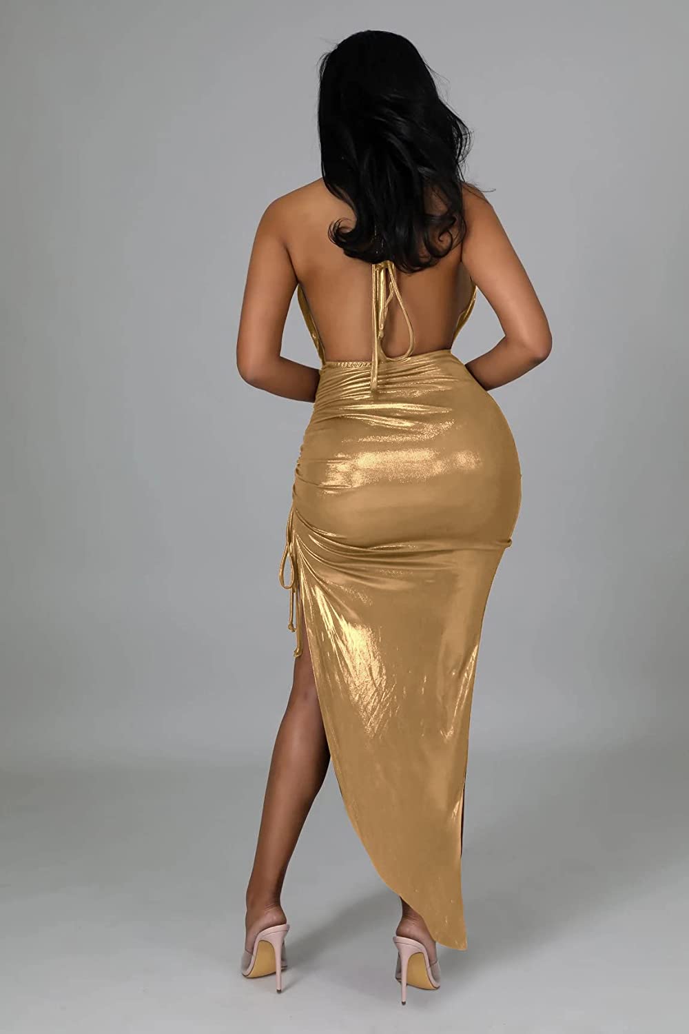EDITCOZY Women's Sexy Spaghetti Strap V Neck Dress High Slit Backless Party Wrap Maxi Dresses