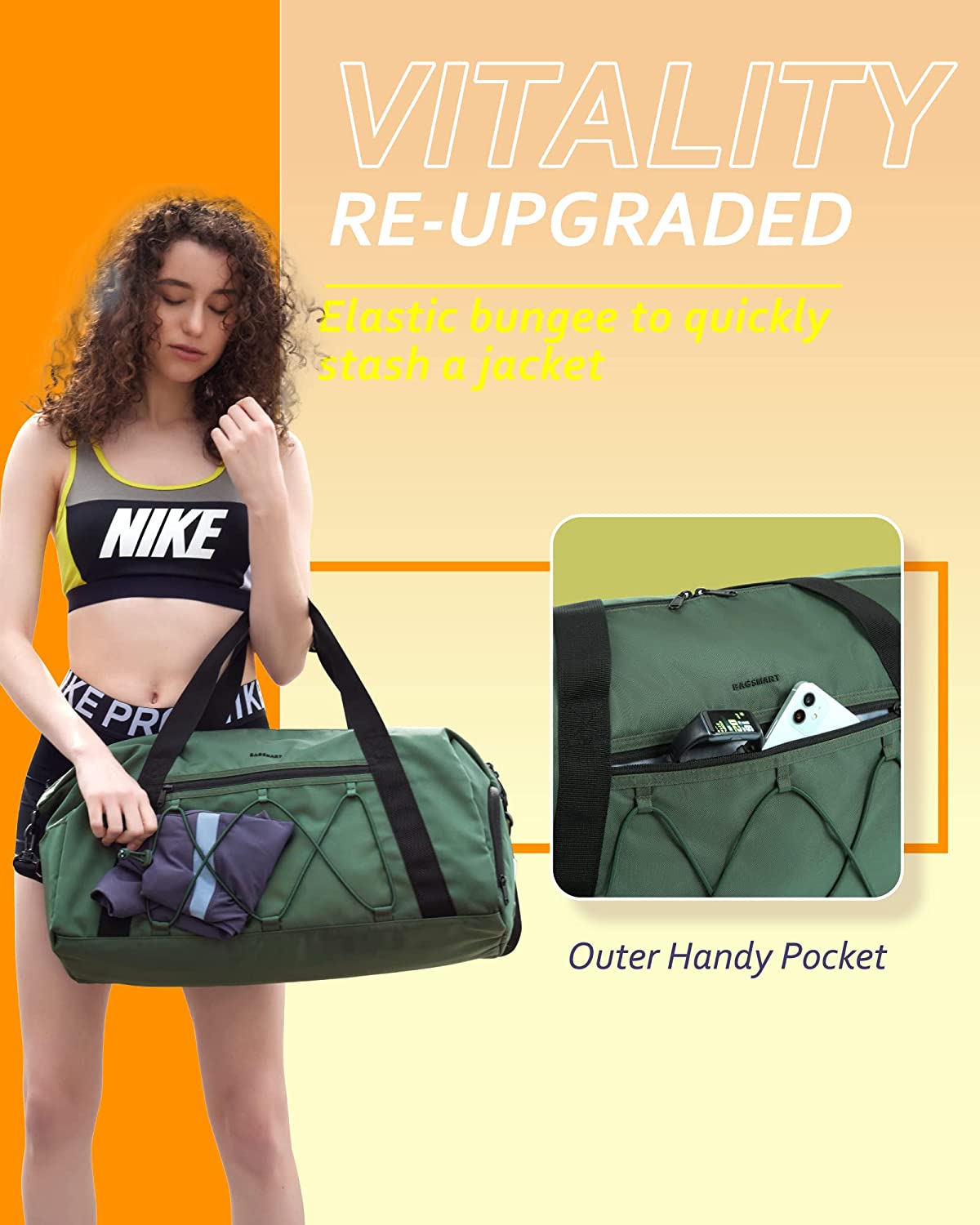 OUT-OF-SIGHT STORAGE: Sizes 22(L) x 7.1(W) x 11(H) inch. The BAGSMART Workout Bag is ideal for everyday use before and after training. The wide bottoms give you plenty of space for your things. The waterproof fabric inner pocket separates dirty and wet clothes(or toiletries) from other items for wet and dry storage.
