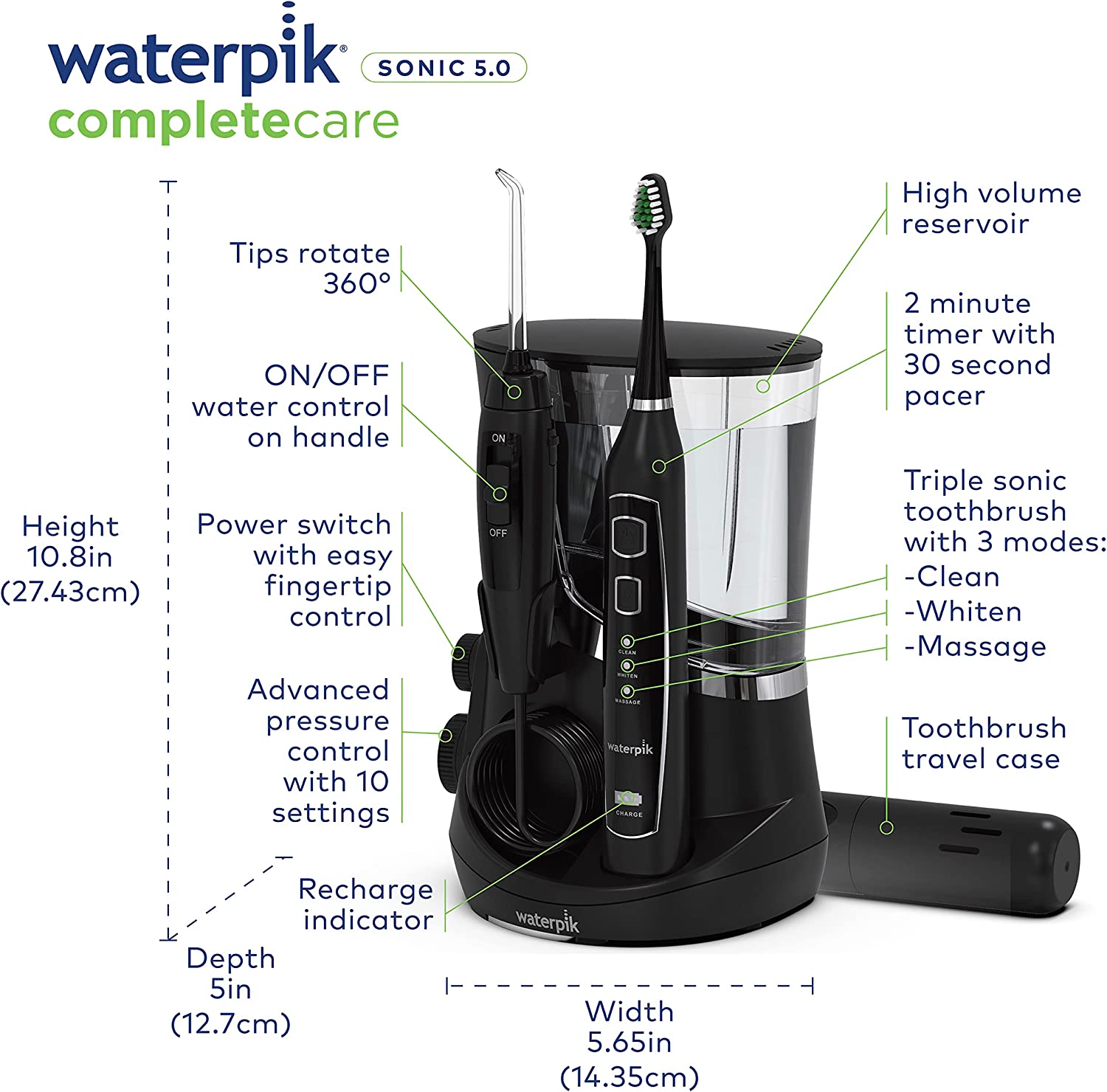Waterpik Complete Care 5.0 Water Flosser + Sonic Electric Toothbrush, Black WP-862
