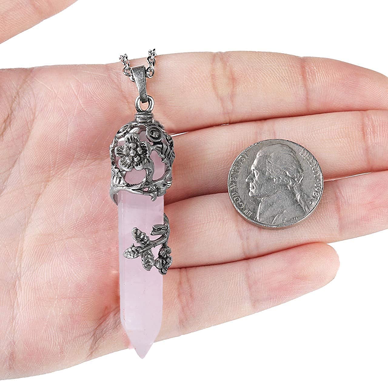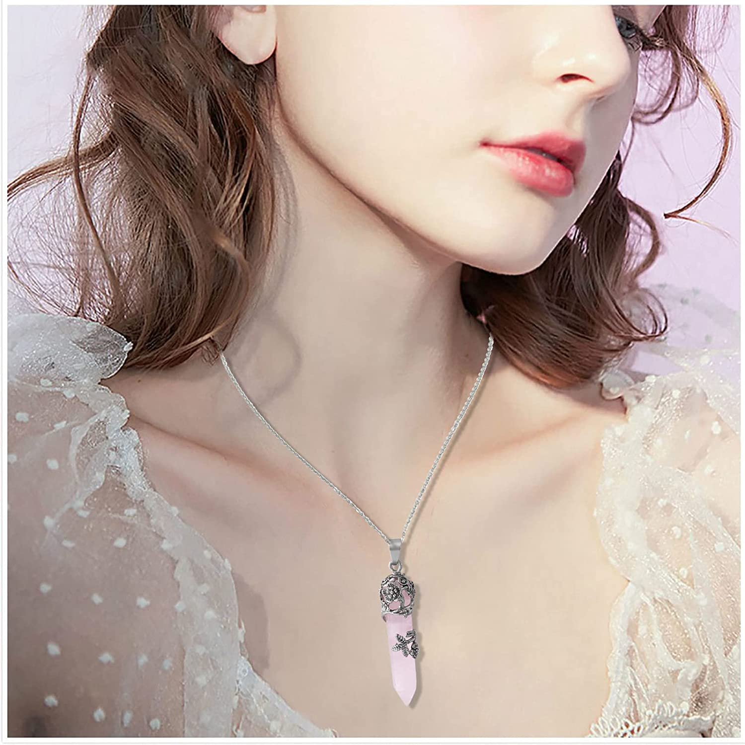 • 【Natural Healing Crystal Point Necklace】 Dainty flower pendant, beautiful pendant necklace jewelry for women girls. Healing crystal necklace is an ideal gift choice during Christmas Day, Anniversary Day, Valentine's Day, Mother's Day and Birthday to your loved one. Comes with a free beautiful transparent box with black frame, easy to store and ready for giving. Makes a perfect magical gift for special one in your life. Of course, including yourself.