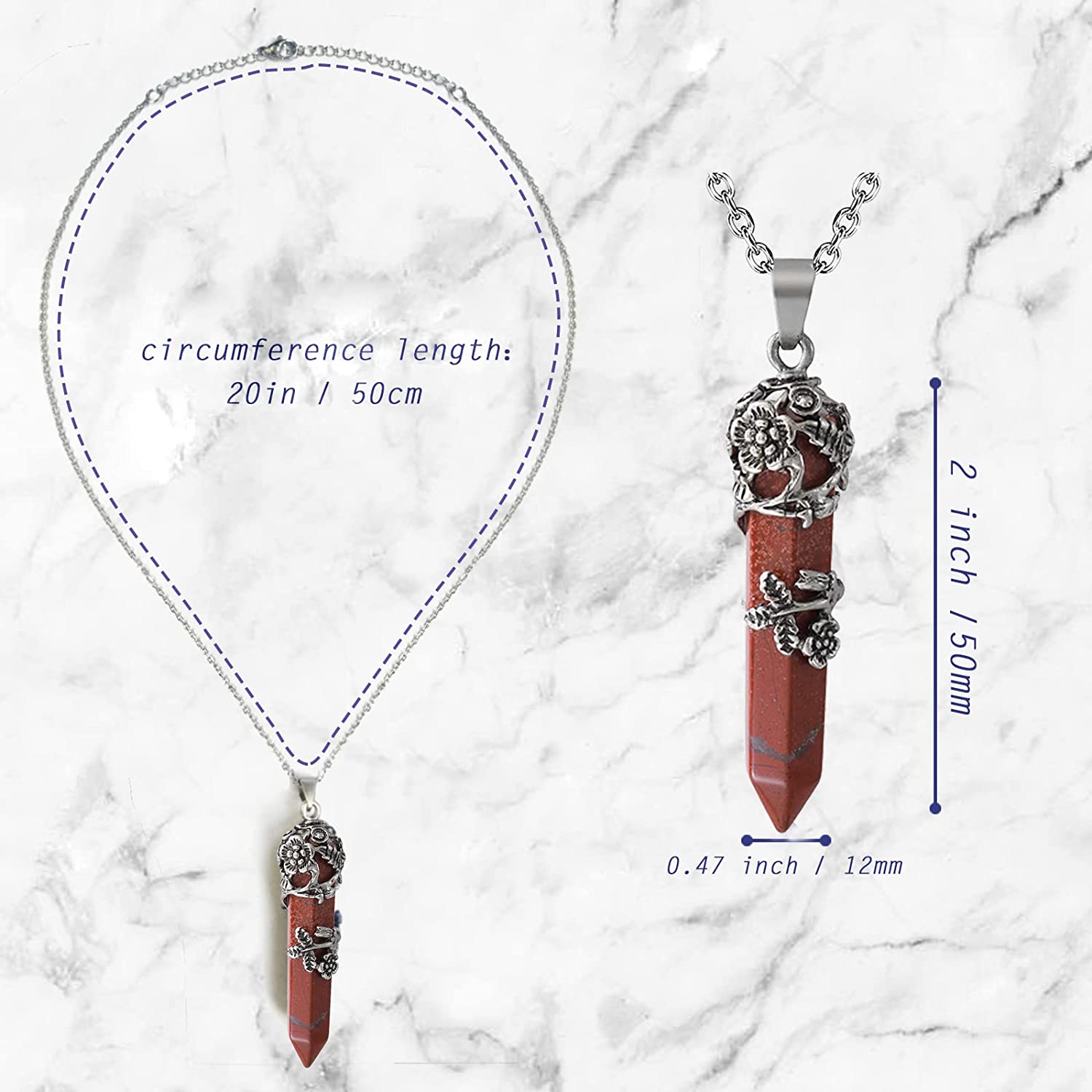 • 【Specification】 Hexagonal crystal pointed crystal necklace is in suitable shape with smooth endges which don't hurt your skin, having proper weight for wearing comfortable. The necklace chain is 20 inches (50cm) (adjustable). Crystal Pointed Pendant Size: 2"x0.47" (50mm*12mm). Necklace crystal weight: 16g. Material: natural crystal stone & stainless steel.