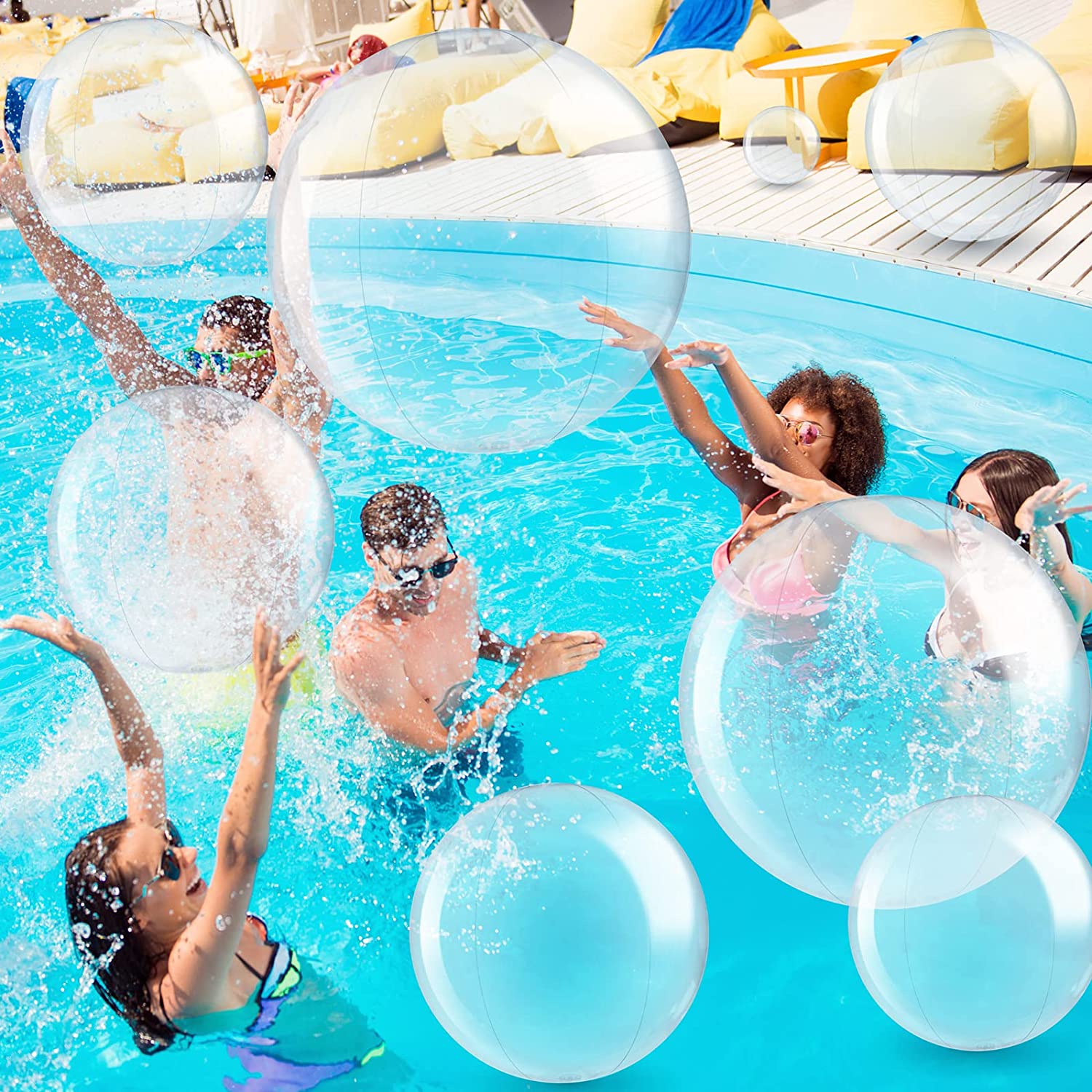 Clear Beach Balls: the inflatable beach balls are clear design, which is beautiful and attractive especially under the sun or spotlight, easy to catch most boys and girls' attention and cater to their tastes