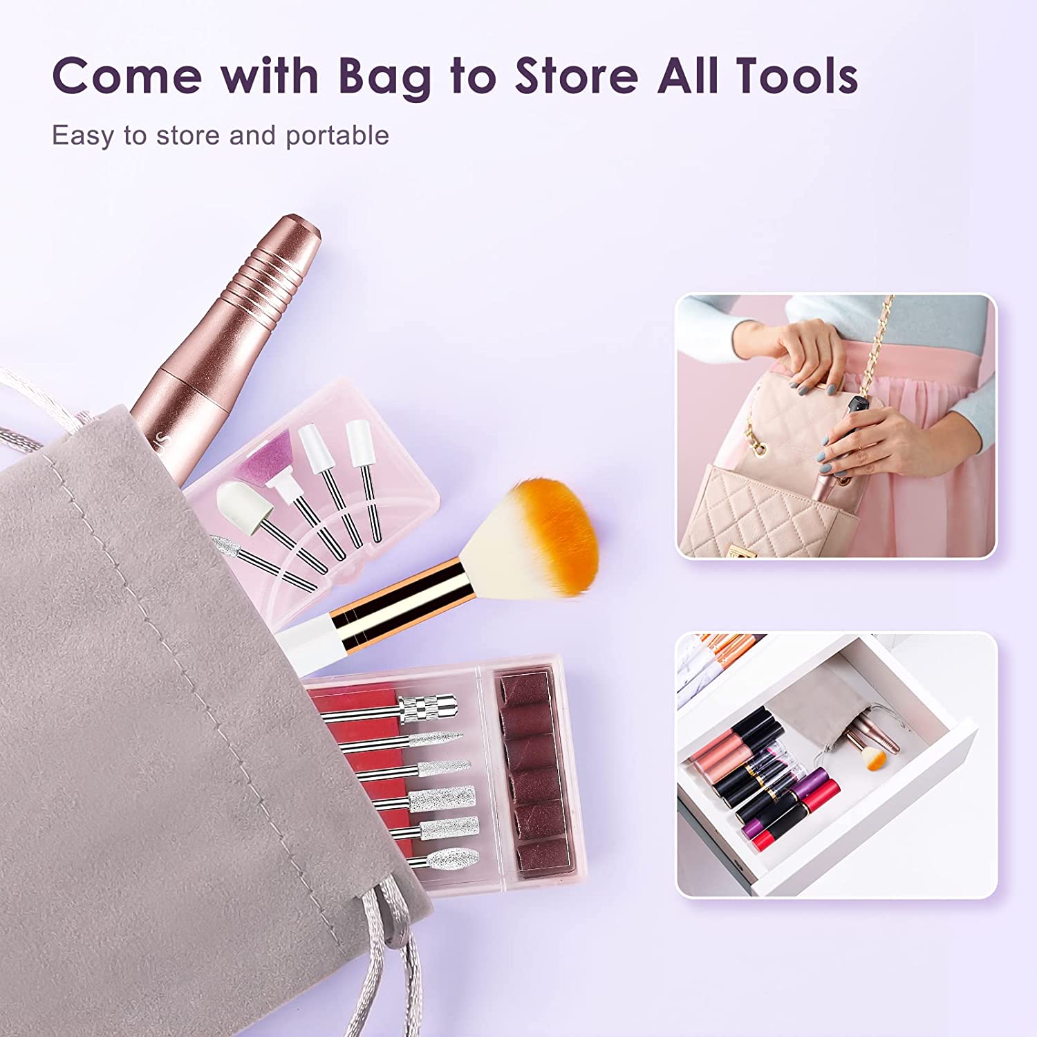 Multifunctional for Mandicure & Pedicure: With adjustable speeds and forward/reverse direction options, this nail drill machine comes with various professional grinder bits, you can customize your various manicure and pedicure routine to your liking: acrylic nails, gel nails, dip powder nails, cuticle and dead skin, calluses, thick nails and any other nail care needs