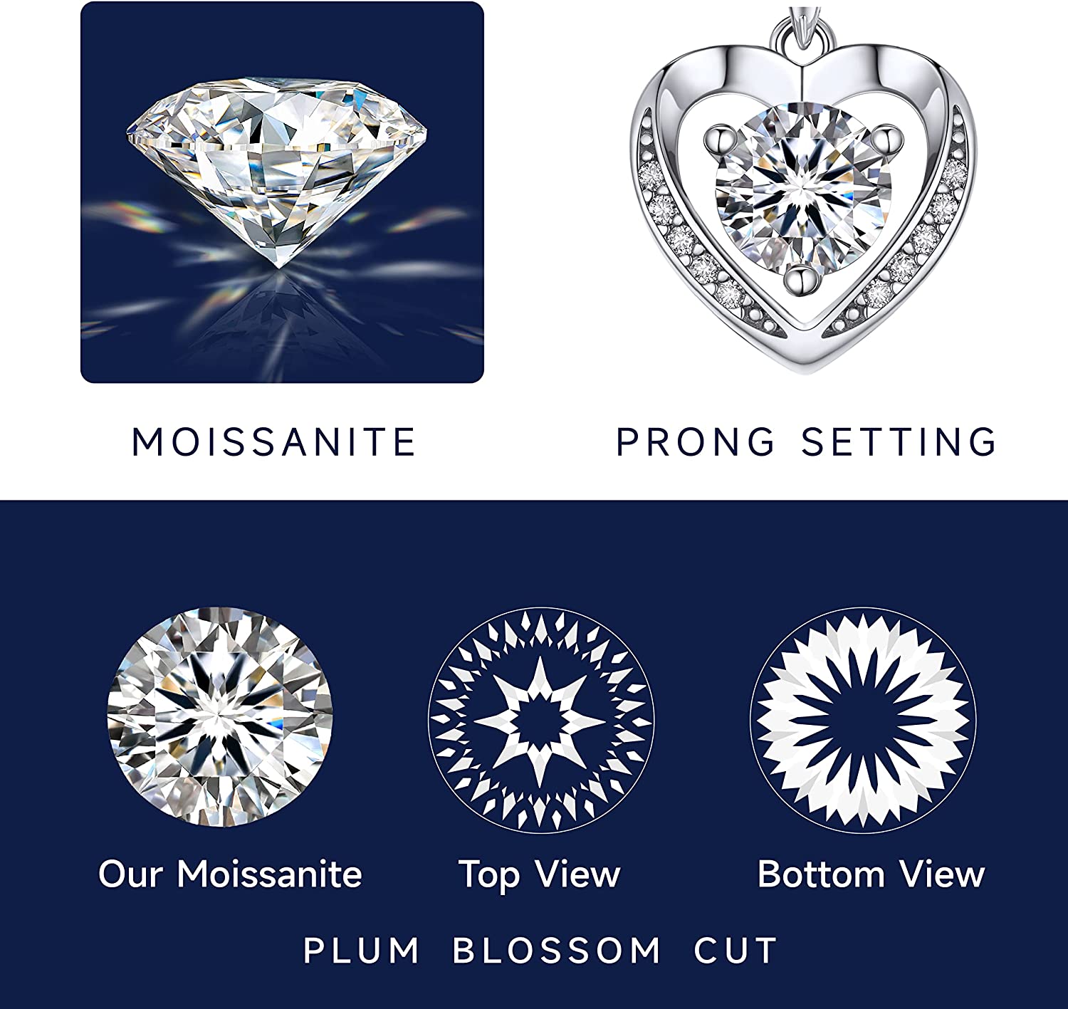 ❤️【Dainty Heart Pendant Necklace】 ➣ This heart necklaces for women is a perfect expression of love. Features a round brilliant cut centre moissanite 6.5mm/1ct 3 prong setting. With 10 accent moissanite. this pendant is suspended from a well-crafted S925 sterling silver chain necklace that can be worn at 16 or 18 inches.