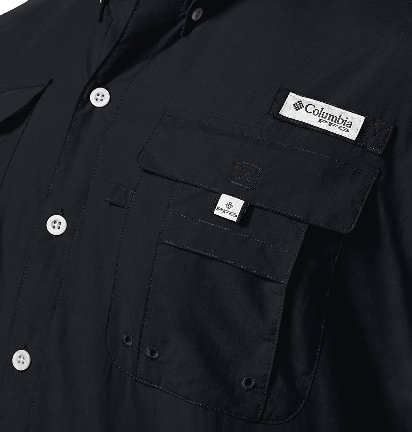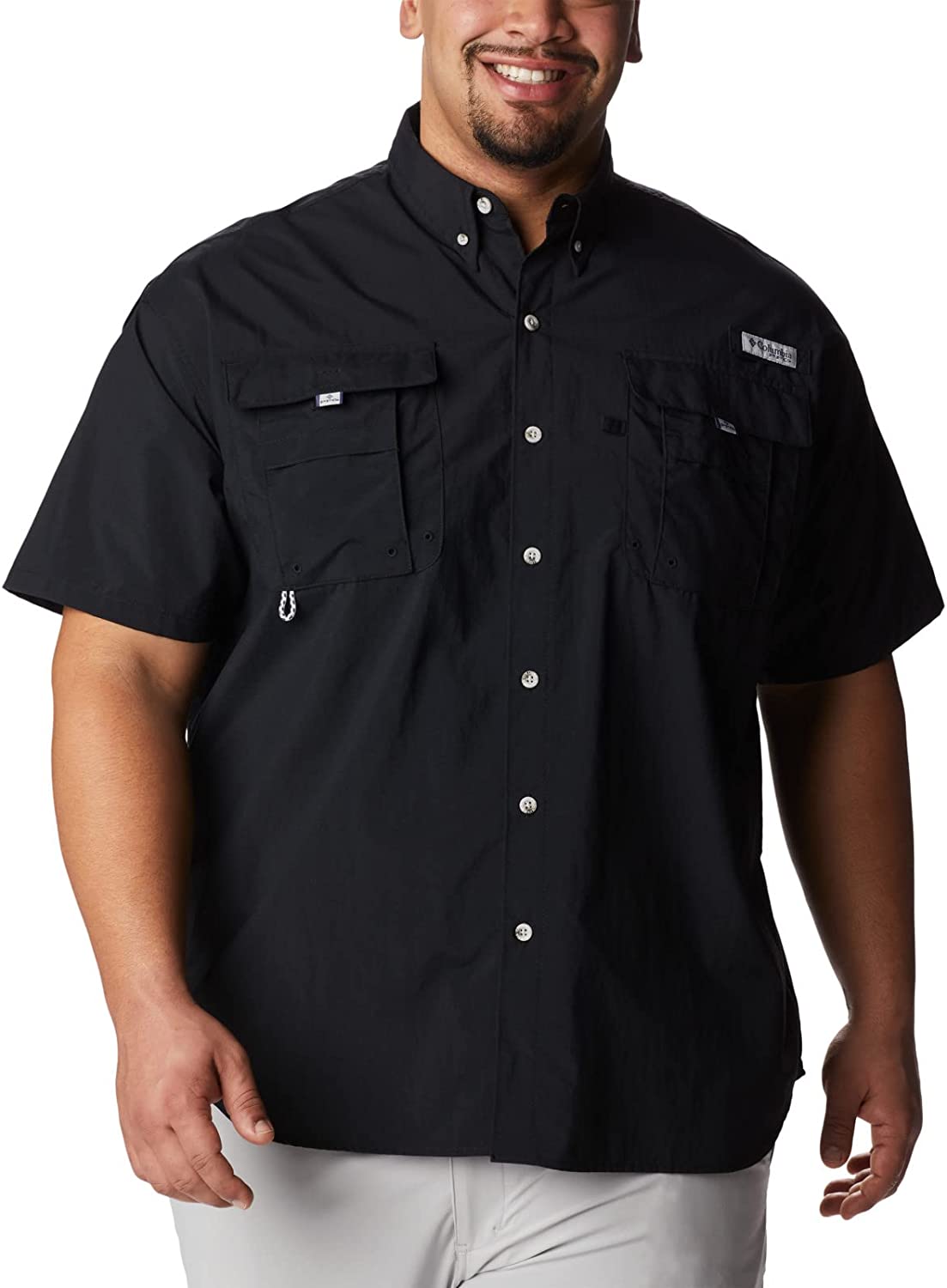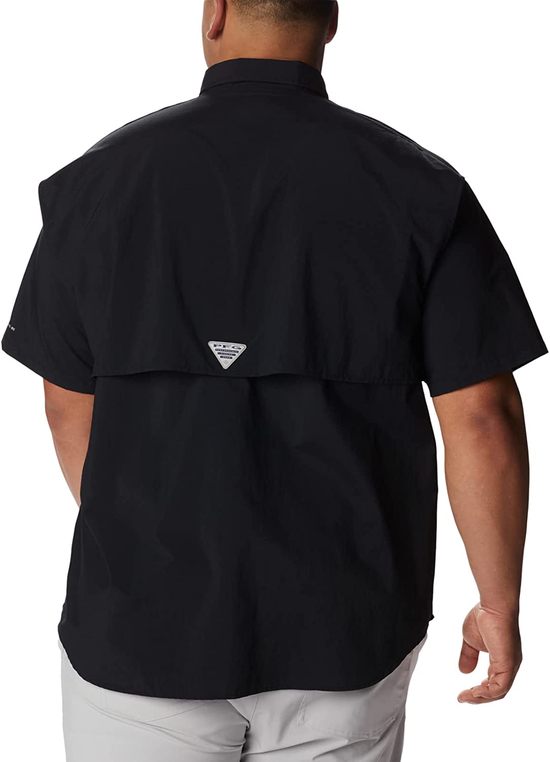 Designed specifically for anglers, this lightweight nylon shirt dries fast, keeps you cool, and protects against UV rays. Mesh-lined back vents make it perfect in hot, humid weather, and tabs let you securely roll up your sleeves. A fishing-ready button-up shirt with a button-down collar. Expect Columbia's best sun protection tech that helps prevent skin damage during long outdoor events. The fabric provides UPF 50 UVA and UVB protection, while the smooth Tactel nylon taffeta fabric is lightweight and dries quickly to keep you cool. Four self-draining pockets at the chest, along with a gear loop, and rod holder keeps things handy while you work on your next lure. This Columbia short sleeve shirt comes in a range of colors and sizes. Extended sizing available. Relaxed Fit. To ensure the size you choose is right, utilize our sizing chart and the following measurement instructions: For the chest, measure at the fullest part of the chest, under the armpits and over the shoulder blades, keeping the tape measure firm and level.