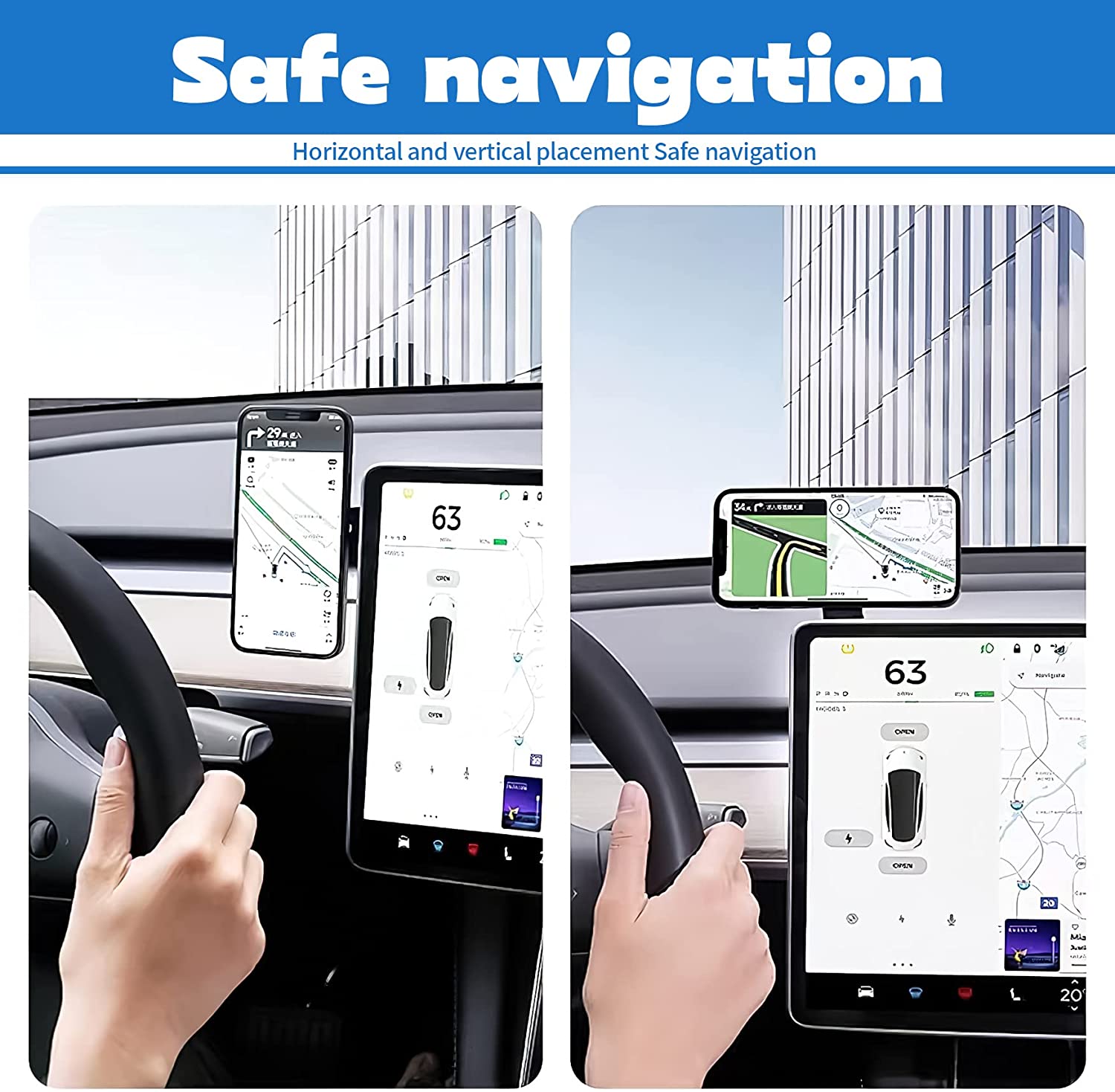 • 【Compatible With Center Screen】Foldable Car Phone Mount for Tesla 3/X/Y/S, Hide It On The Back of The Center Screen so That it is Not Visible, Magnetic Car Phone Mount Retains The Design of Tesla's Interior. It Can Also Be Mounted On The Dashboard or Windshield. (Note: This MagSafe Car Mount Does Not Have Wireless Charging!!!) .