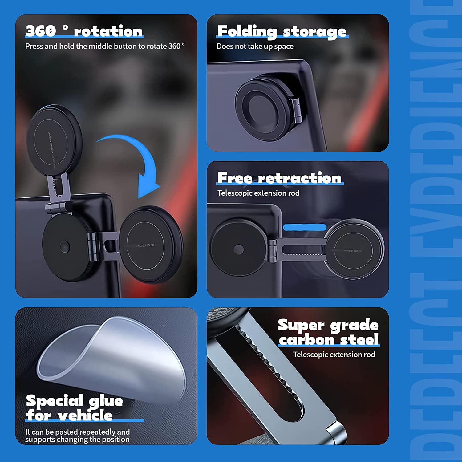 • 【Angle and Length Adjustable】The Angle of This Phone Mount Can Be Rotated 360 Degrees, The Stand Can Be Flipped Back and Forth 135 Degrees, and The Length of The High Quality Metal Arm Can Be Extended 1.41 Inches, So You Can Easily Rotate the Display and Adjust it to A Perfect View as You Wish. When it's Not in use, You Can Fold it Up. (Perfect for Hiding!!!) .