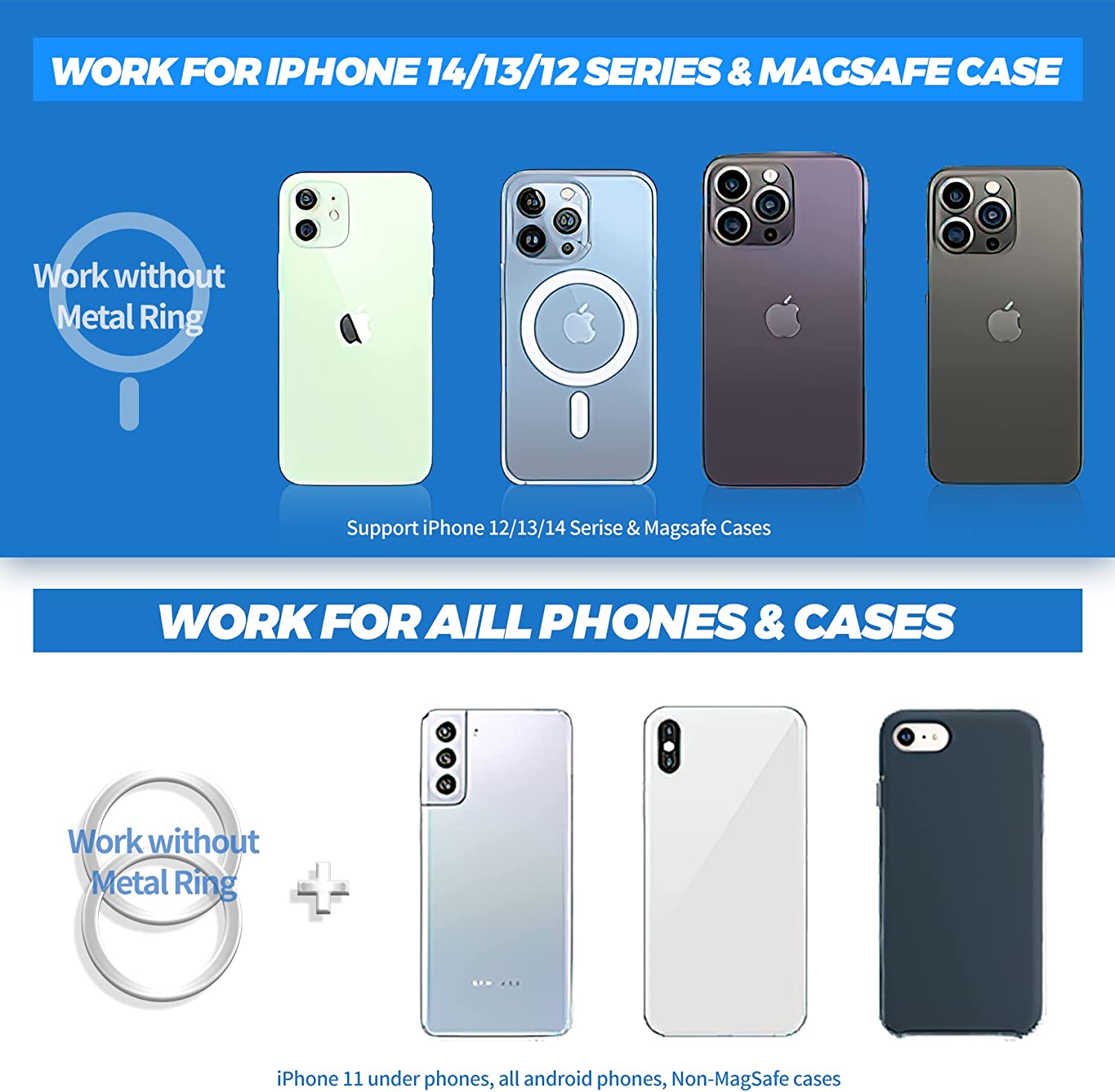 • 【Magsafe Design】This Tesla MagSafe Car Mount is Compatible With iPhone 14/13/12 Pro Max Mini and Official MagSafe Cases and Other Magnet Phone Cases. (Note: If Your iPhone 12/13/14 Has a Thick Case or If You use Another iPhone or Android Phone, Please Attach The Metal Ring to The Back of Your Phone or Case.)
