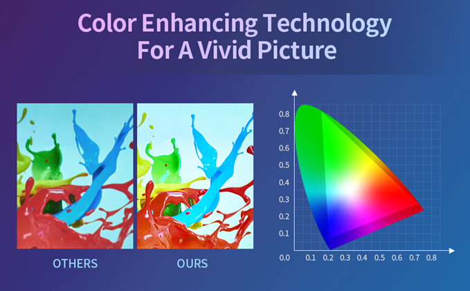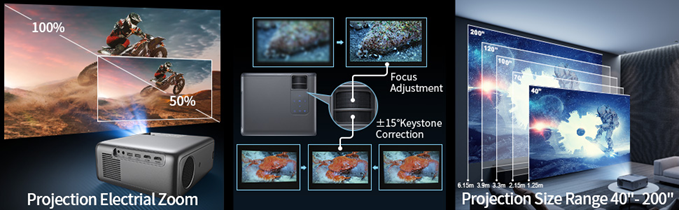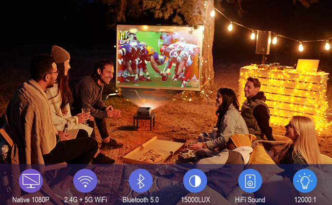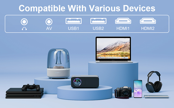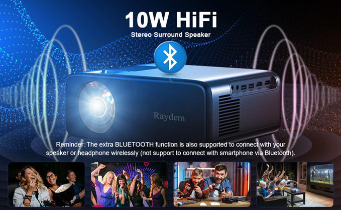 • ?【HiFi Speakers & Low-noise Radiator Fan: 】 We have built-in 10W dual stereo speakers with a HiFi system for a great auditory sense experience. Listen to what you want, not what you don’t with the projector’s optimized low-noise radiator fan, it has a 20% reduction in noise compared to competitors. And because of this improved fan it also helps to extend the life of the projector to 50,000 working hours.