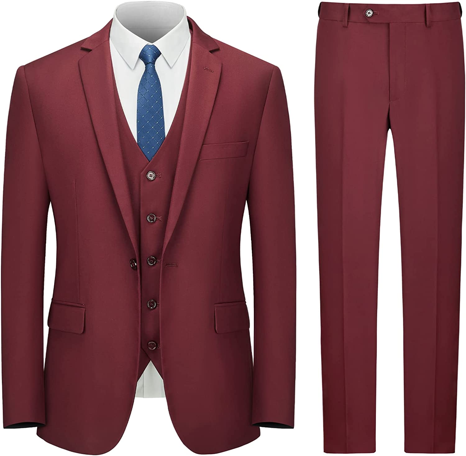 LUPURTY Suits for Men, 3 Piece Men's Suit Slim Fit, Solid Jacket Vest Pants with Tie, One Button Tuxedo Set
