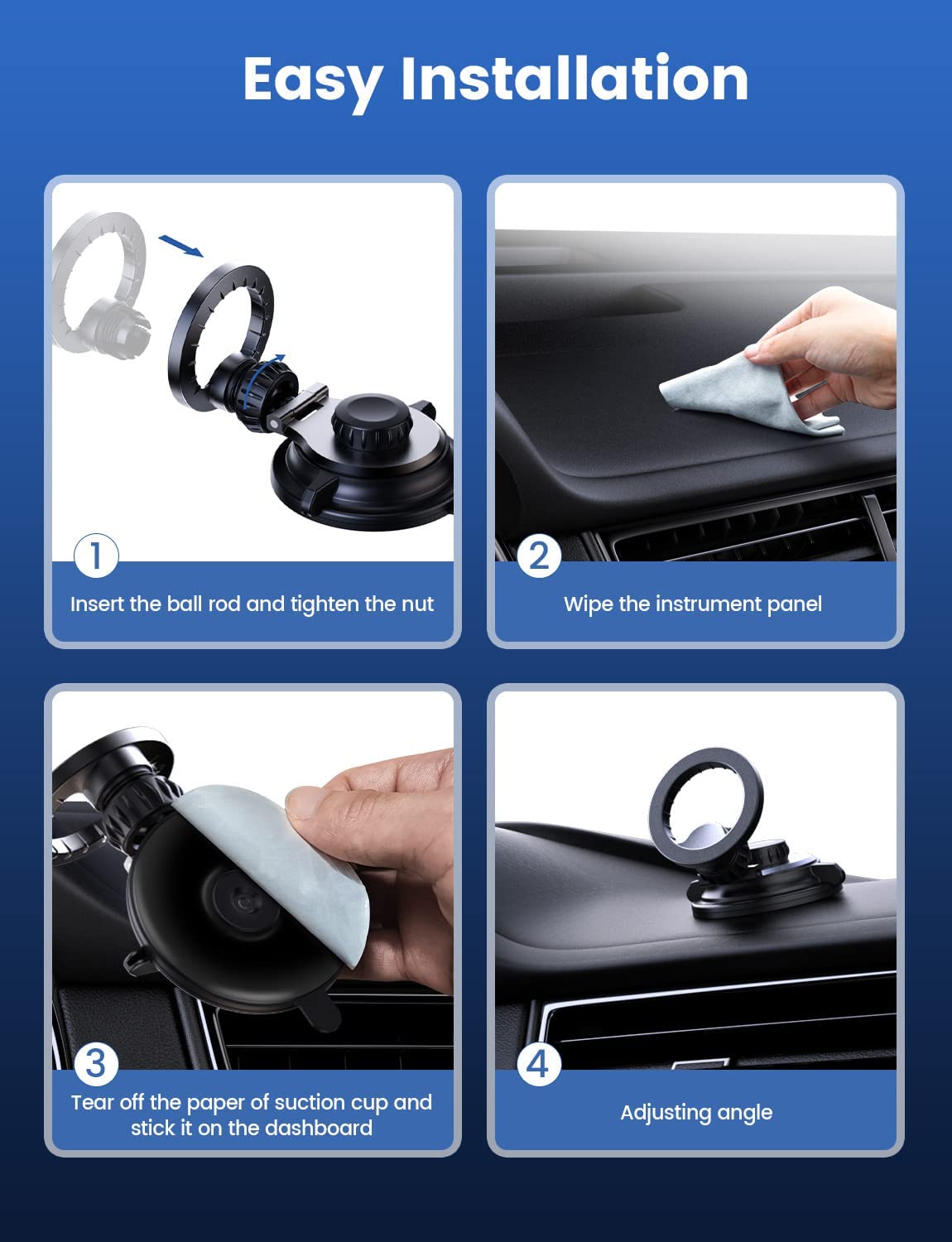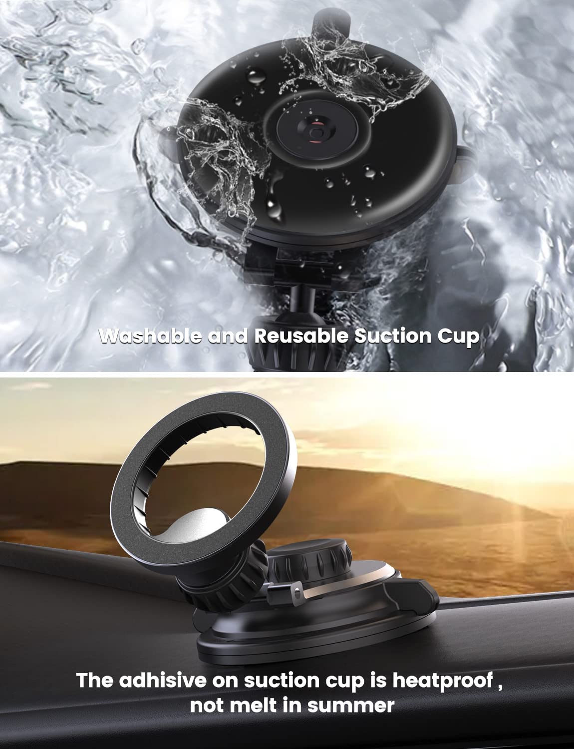 • ??[Magnetic Car Phone Mount with Reusable Suction Cup] The suction cup can be disassembled and washable . If the suction cup is not sticky after using a while please clean the Suction cup with warm water and dry , the suction cup will become much sticky after wash