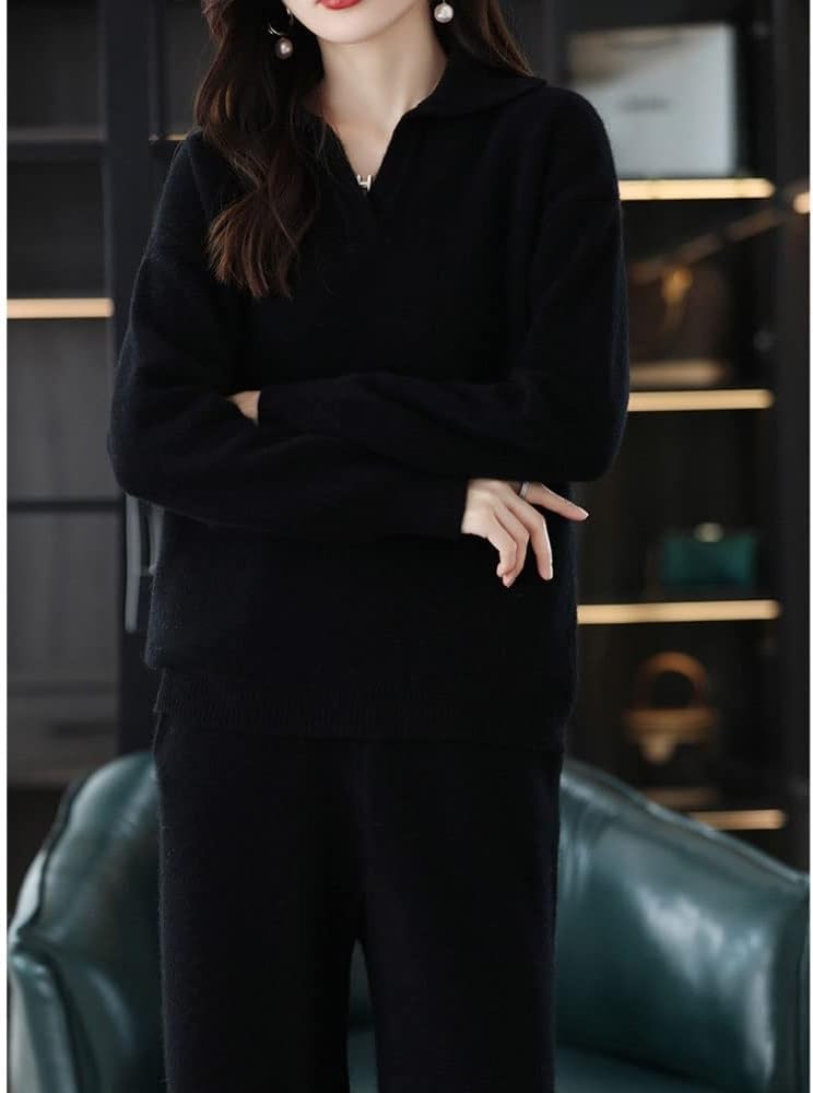 Walnut Casual Wide-Legged Pants Knitted Suit Autumn and Winter Loose Wool Sweater Top High-Waisted Pants Two-Piece Suit (Color : D, Size : M Code)