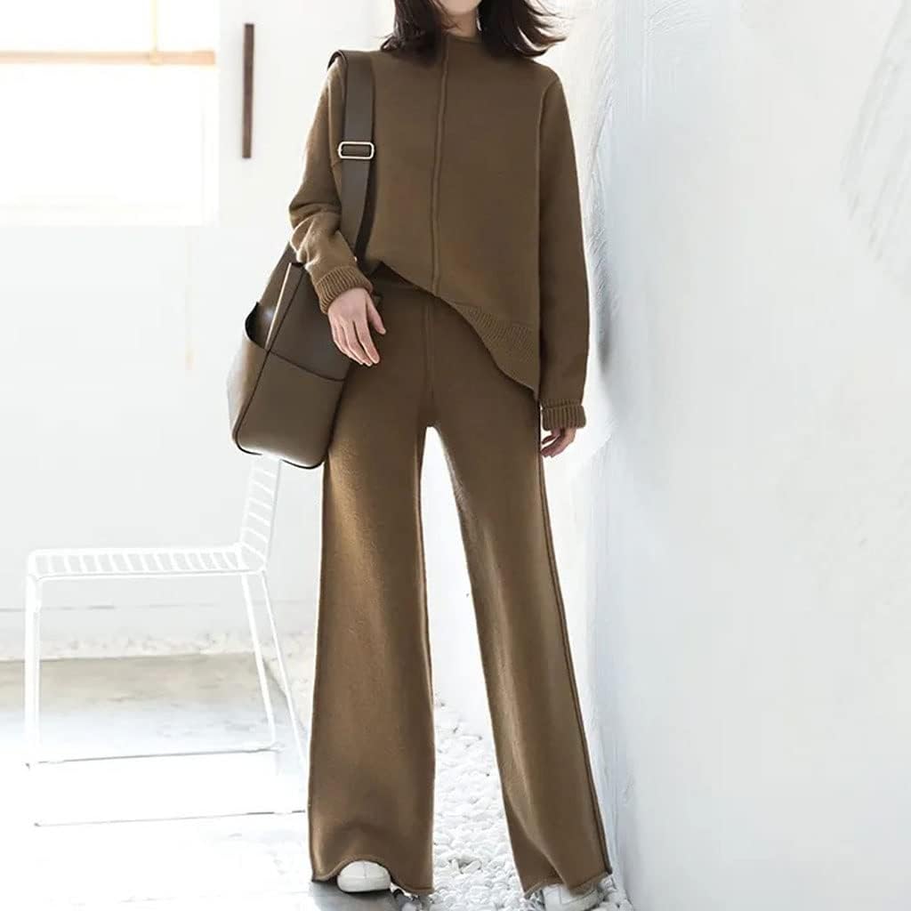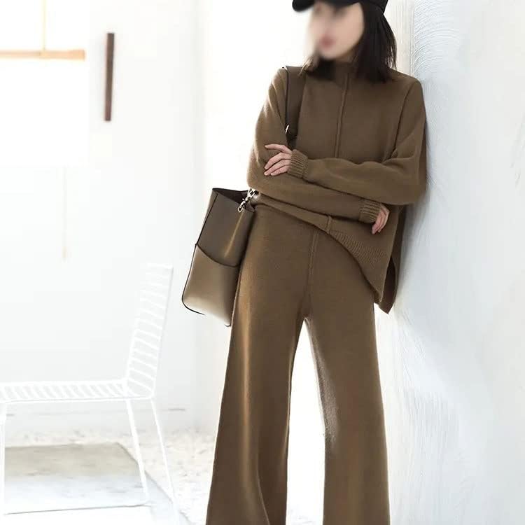 Walnut Age-reducing Thin Knitted Suit Women's Slit Sweater Wide-Leg Pants Autumn and Winter Two-Piece Set (Color : D, Size : L Code)