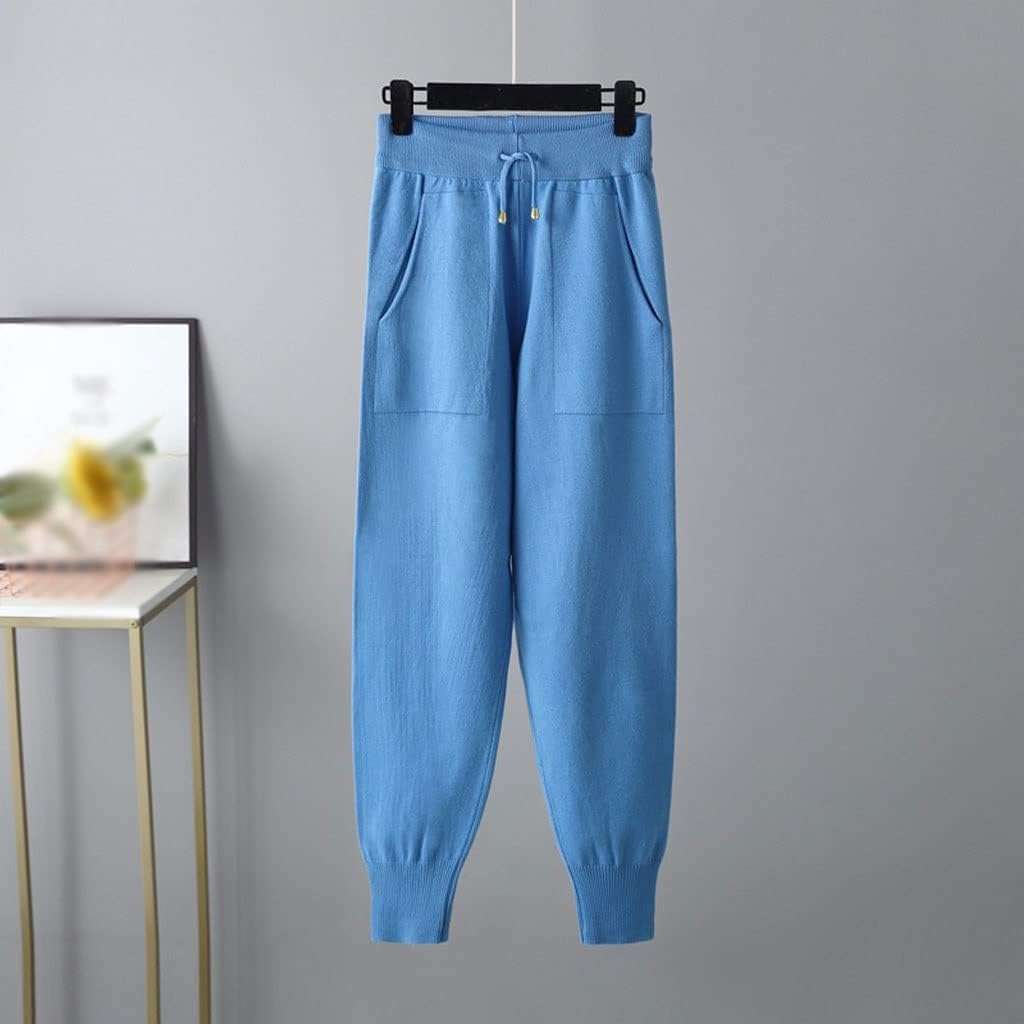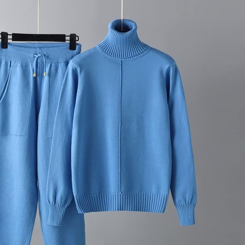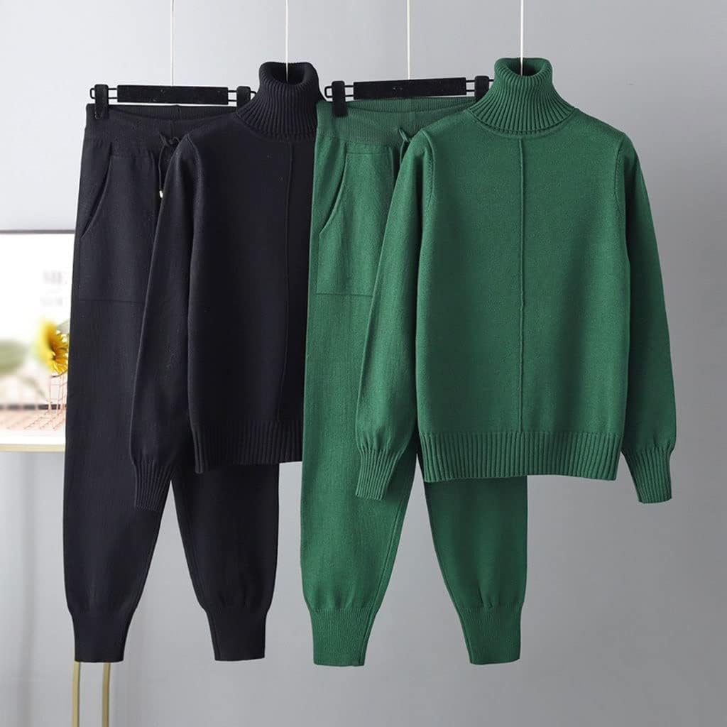 Walnut Two Pieces Cashmere Wool Suits Female Turtleneck Warm Knit Tops and Casual Pants Sets (Color : A, Size : 1)