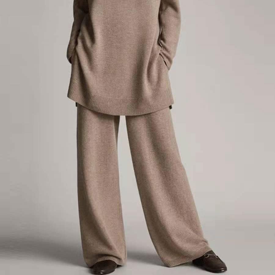 Walnut Autumn and Winter Knitted Solid Color Turtleneck Loose Sweater Wide-Leg Pants Casual Two-Piece Suit (Color : D, Size : L Code)