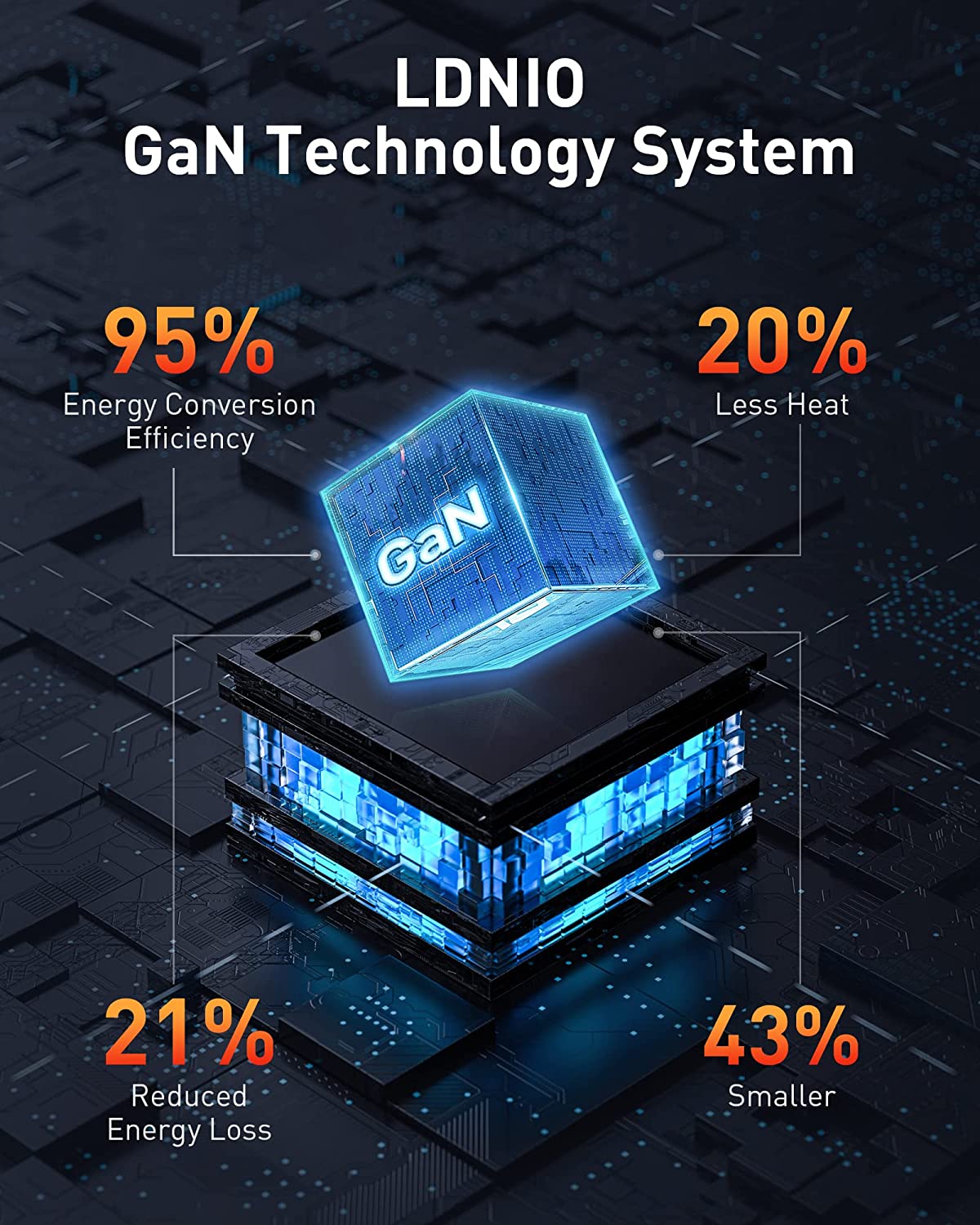 • 【New GaN Technology】 LDNIO 100W GaN charger upgrades GaN technology to provide more efficient charging than traditional USB C power supplies, a compact, powerful and energy efficient charging technology. 43% smaller than the original 4×61W charger, the lightweight 3.3*1.1*2.5-inch body and travel-friendly design, 5-foot extension cord and worldwide 100-240 volt AC input voltage make it the ideal desktop charger wherever you go.