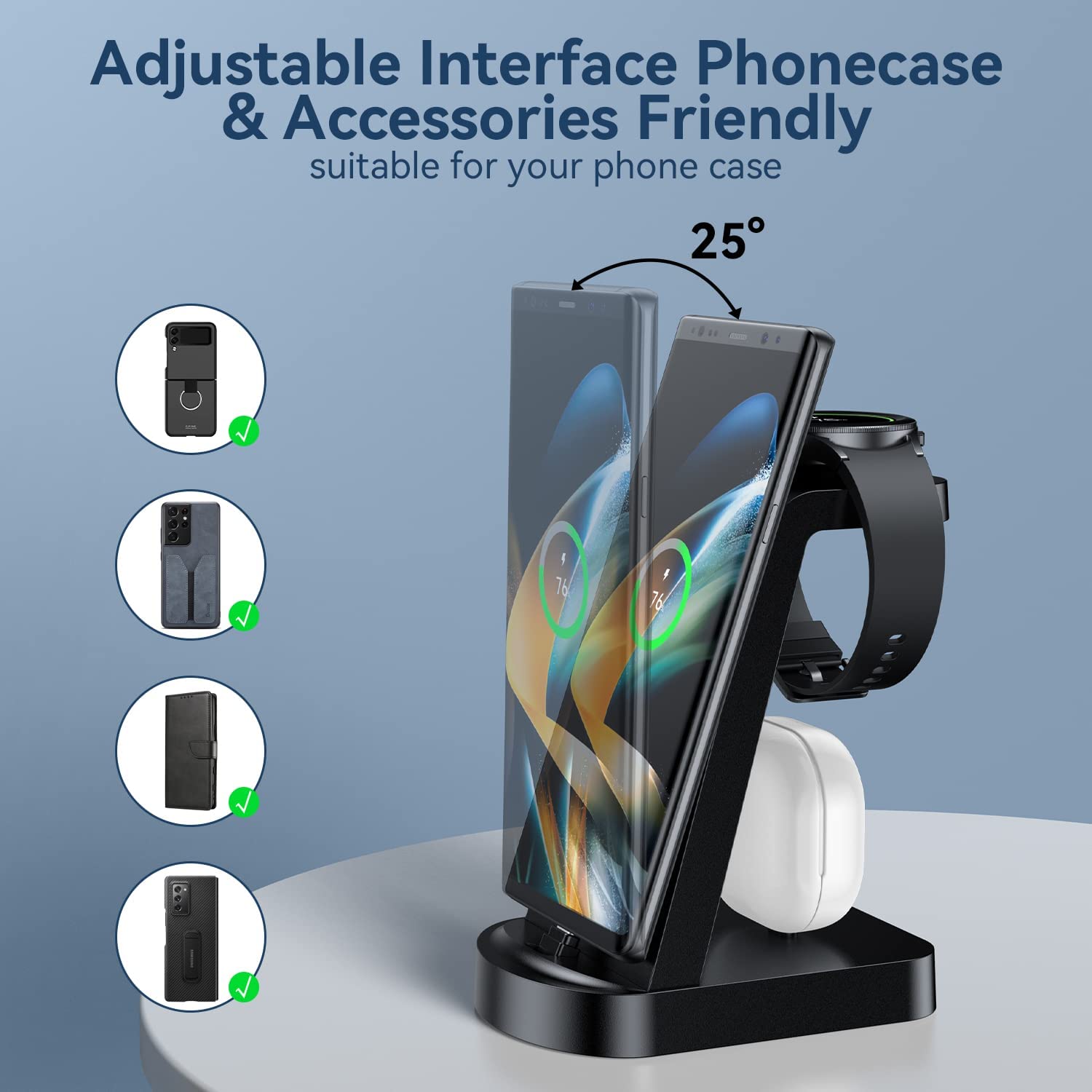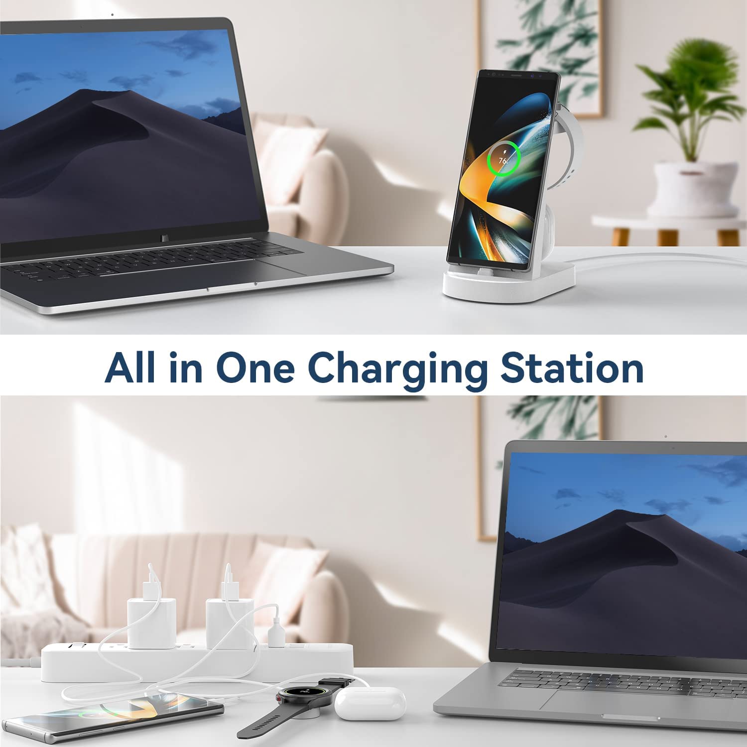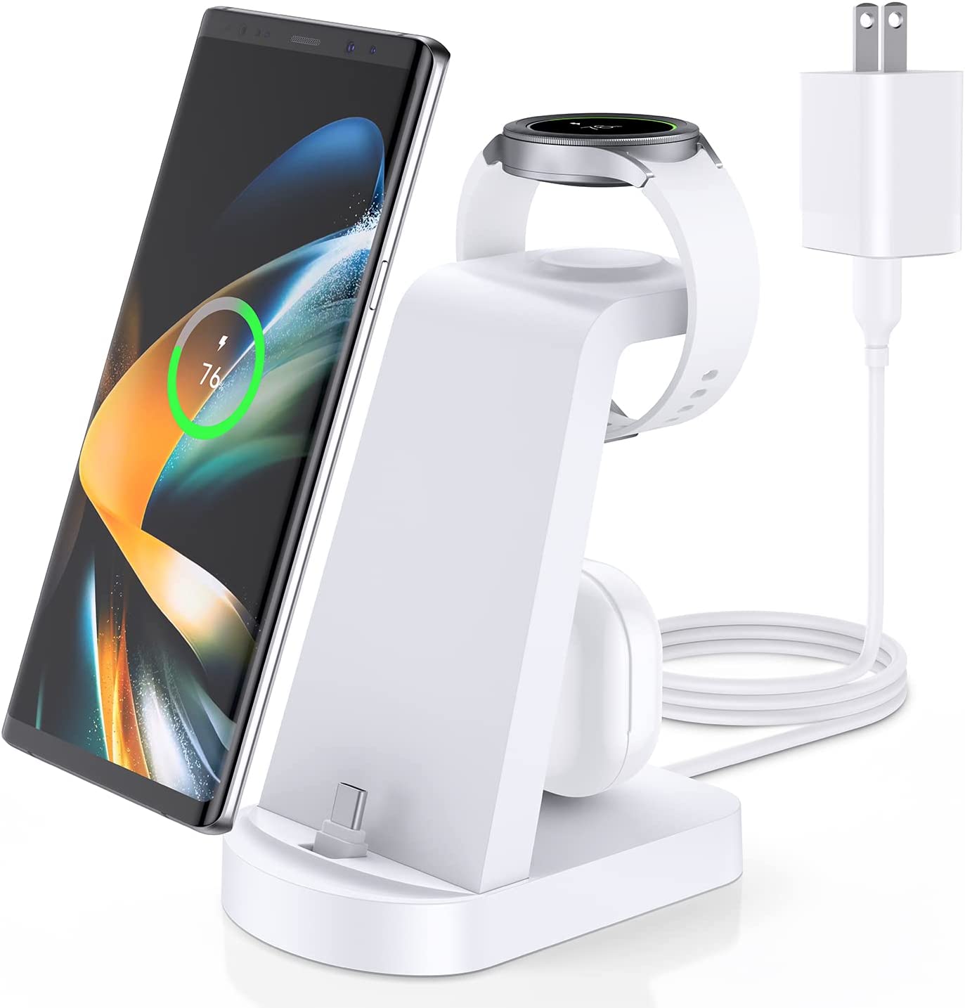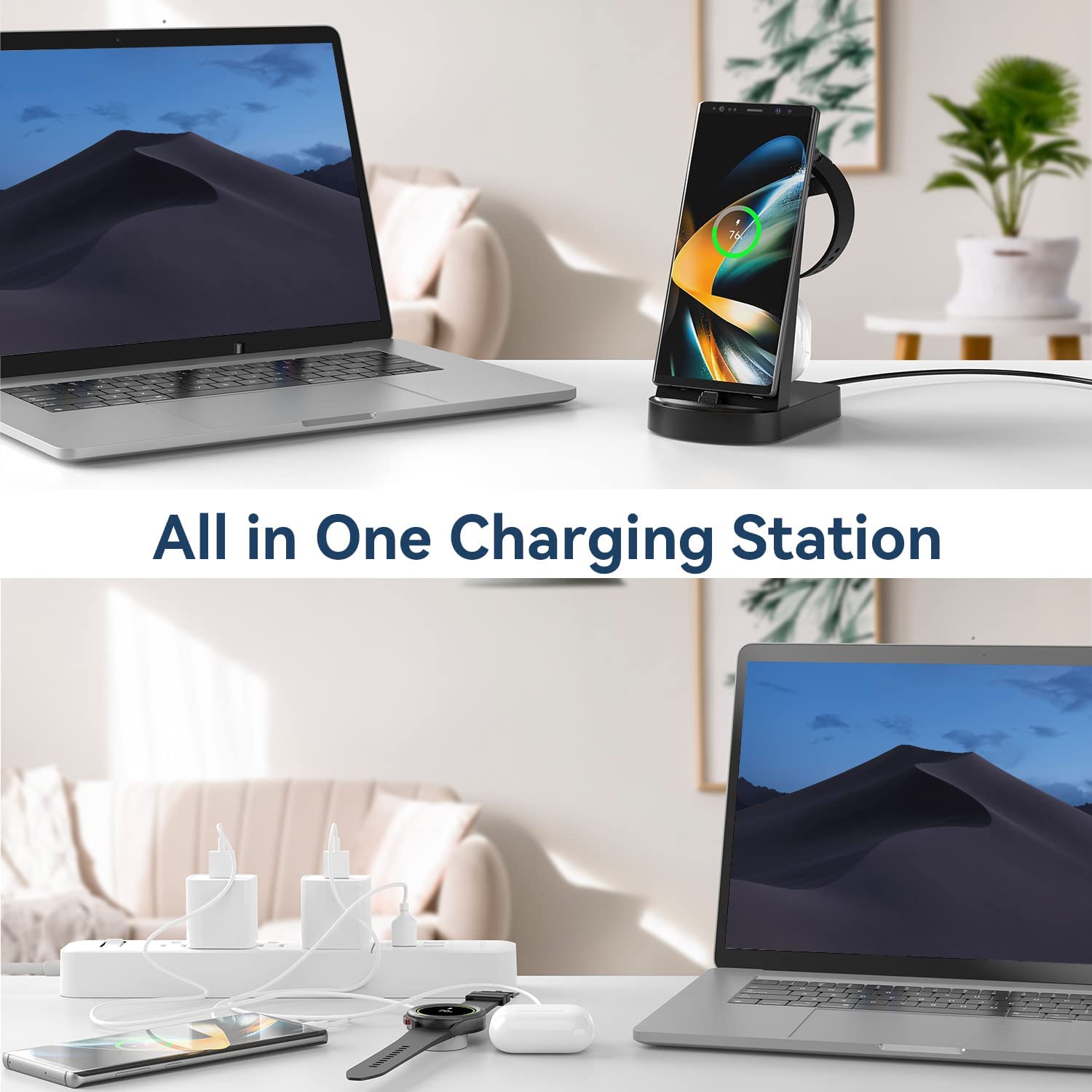 Charging Station for Samsung Multiple Devices,DUMTERR 3 in 1 Fast Charging Stand for Galaxy S22 ultra/S22/S21/S20/S10/Note20/Z Flip 4/Z Fold 4/Galaxy Buds,Wireless Charger for Galaxy Watch 5 Pro/4/3