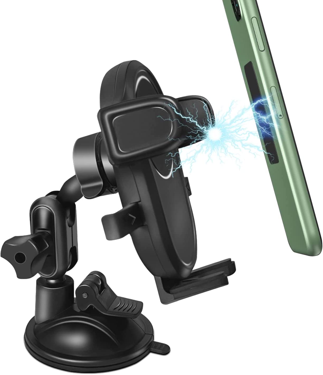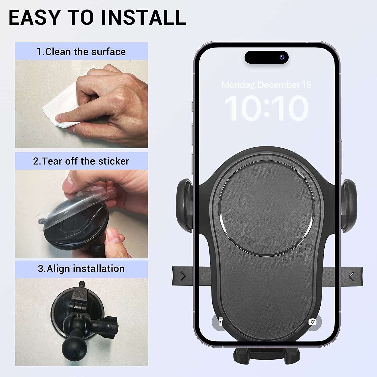 • 【Convenient Operation】This Phone Mount with the One-click release button design, you can just press the button on the side of the holder to release the two sides grips, then snap device into place, your phone is good and secure. Easy to place and remove your smartphones with just one hand.