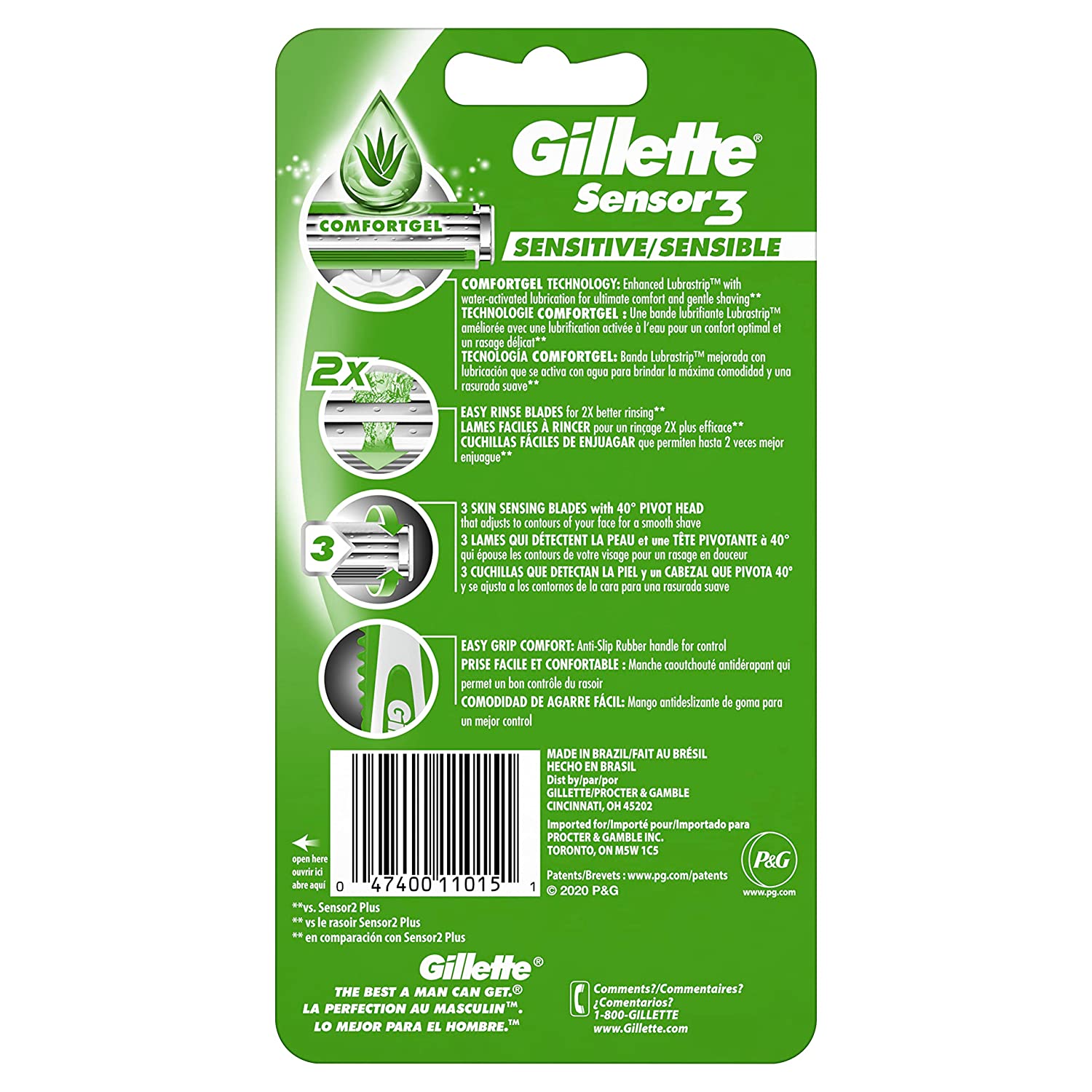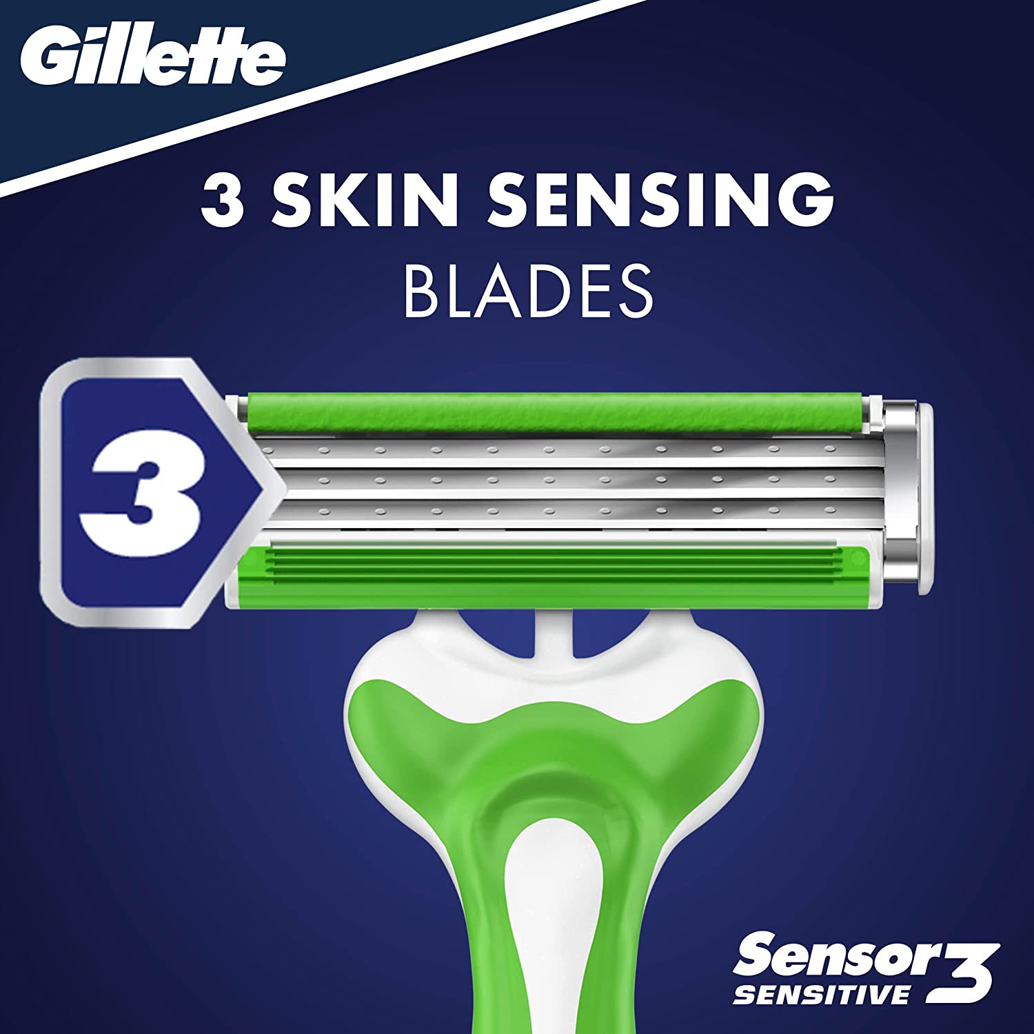 - 3 skin sensing blades for a comfortable shave